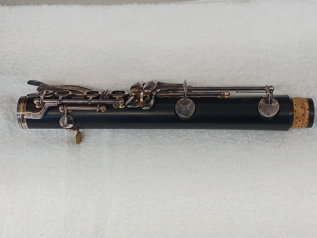 調子:B♭ キイ:洋銀製メッキ、アフリカ産上質グレナディラ材使用。ベームシステム、17キー、6リング。※当社指定業者にてメンテナンス済み。付属品:ハードケース。ケースに梱包材を巻いて発送します。