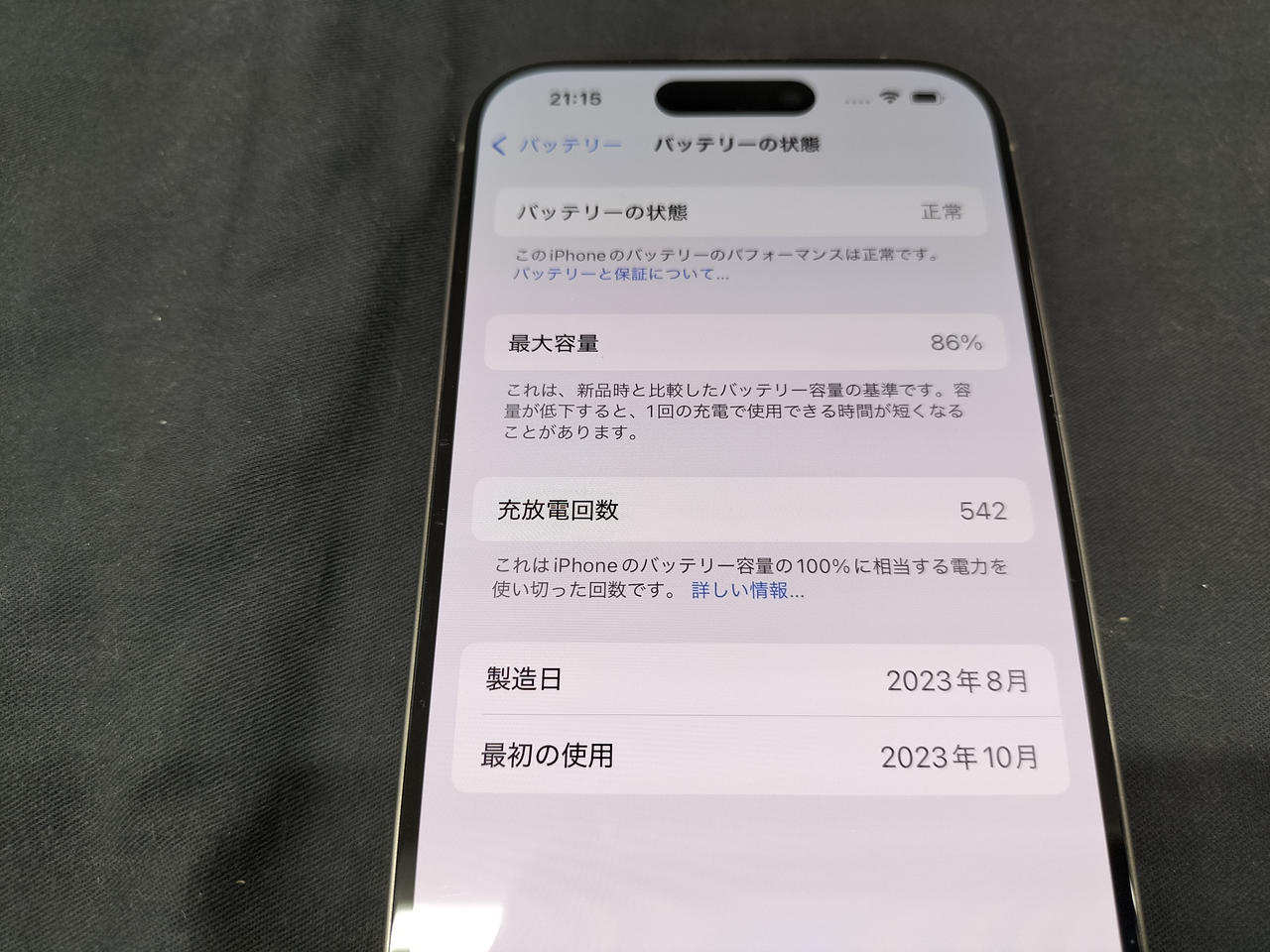 バッテリー最大容量:87% |