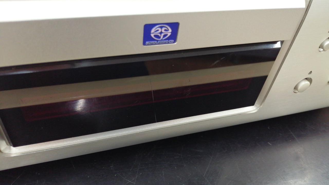 症状:チェック時、CD再生できましたが、ピックアップ弱りあり。振動を与えると、音飛びします。SACD未チェック。PHONES LEVELツマミ破損あり。カバー割れています。レベルの調整はできます。その他動作未チェック。 |