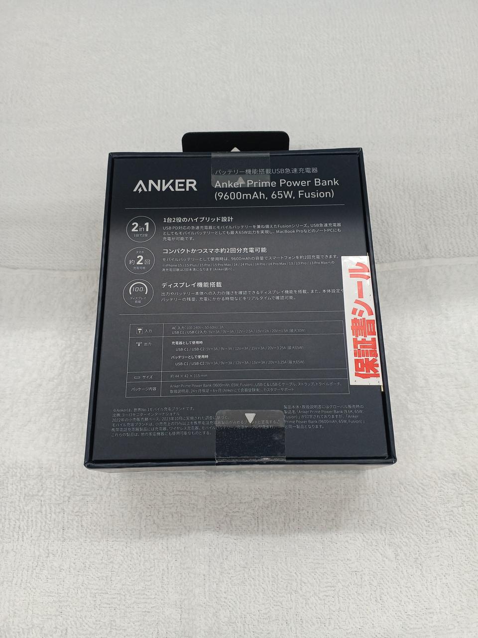 最大65W出力、容量、9600mAh、モバイルバッテリー以外に急速充電器として使用可能 |