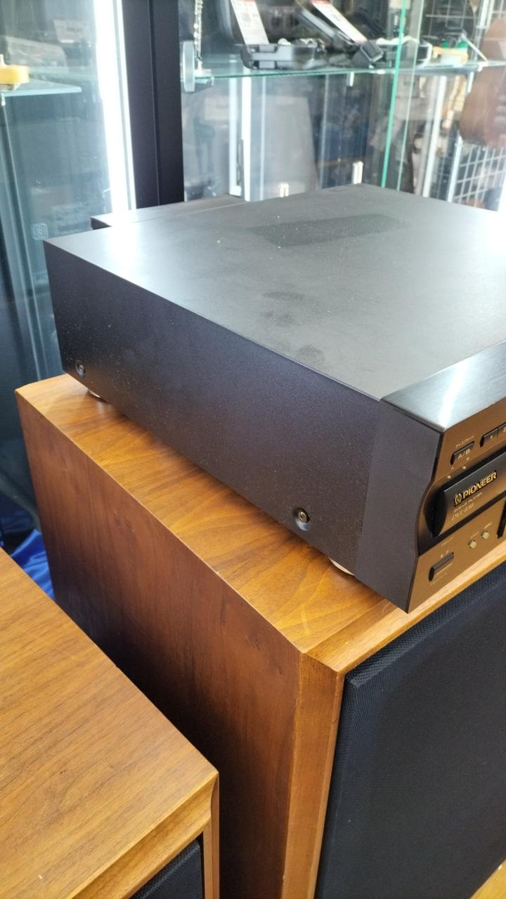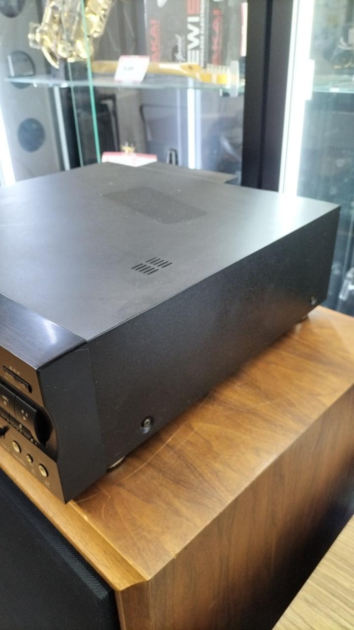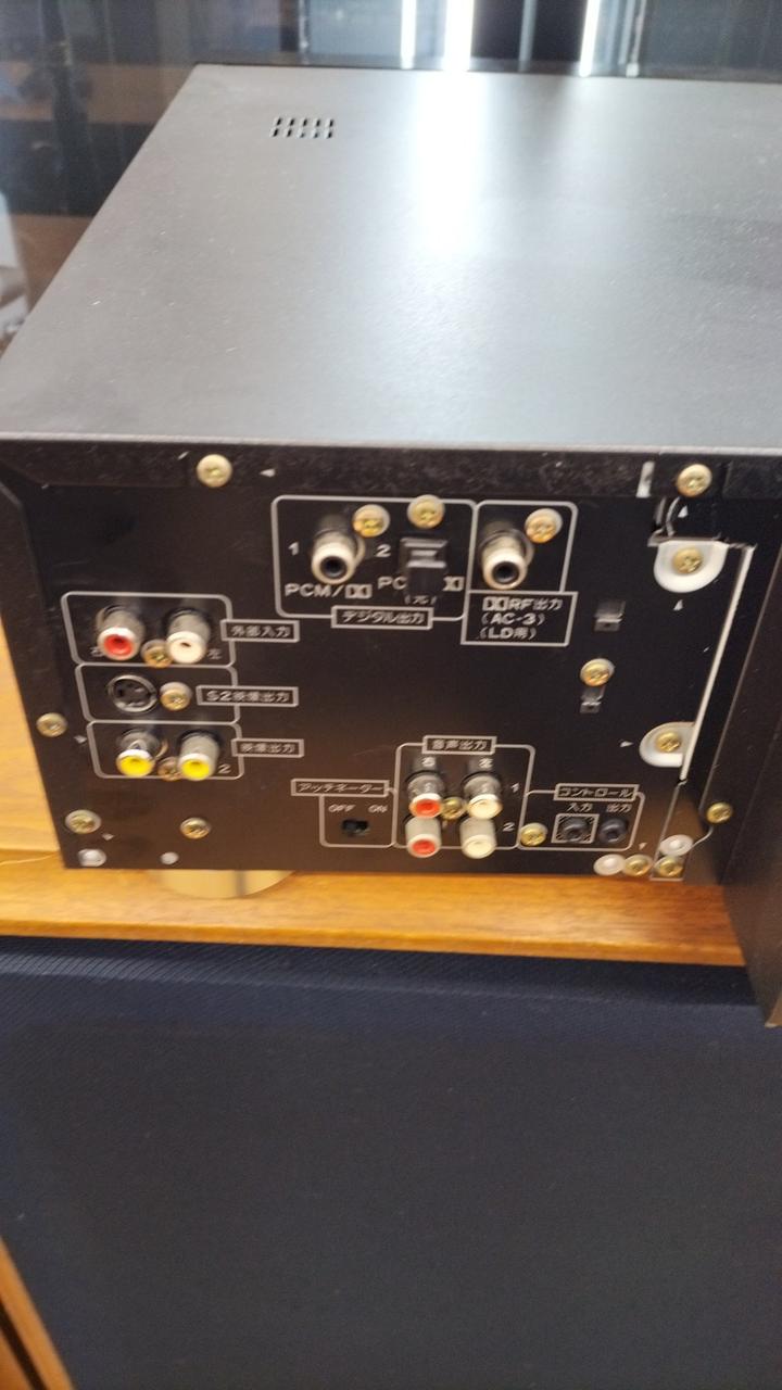 レーザーディスク・DVD再生・マイク入力対応のコンパチデッキ。元々はカラオケ用に製造されていますが、通常のLD/DVDプレーヤーとしても使用可能です。出力は映像がアナログ黄色とS2端子、音声はアナログ赤白か光デジタル出力です。 |