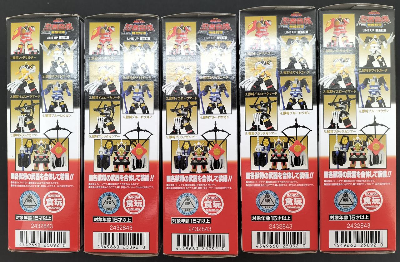 、セット内容:1.レッドサルダー、2.ホワイトカーク、3.イエロークマード、4.ブルーロウガン、5.ブラックガンマー |