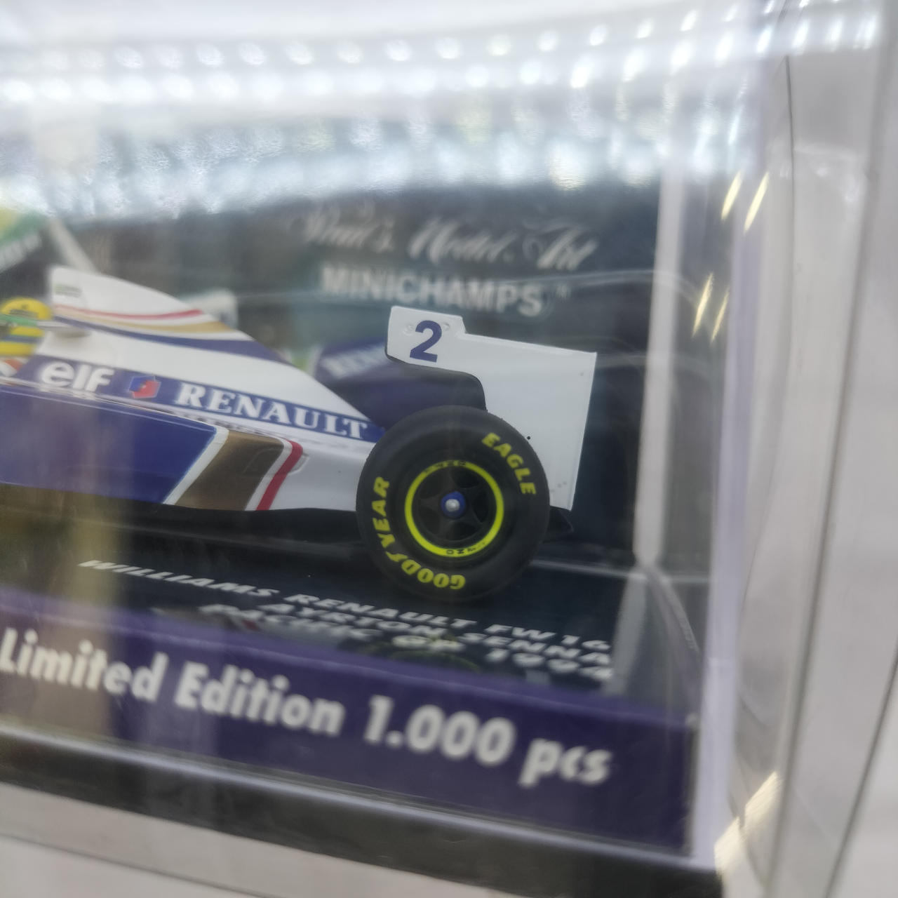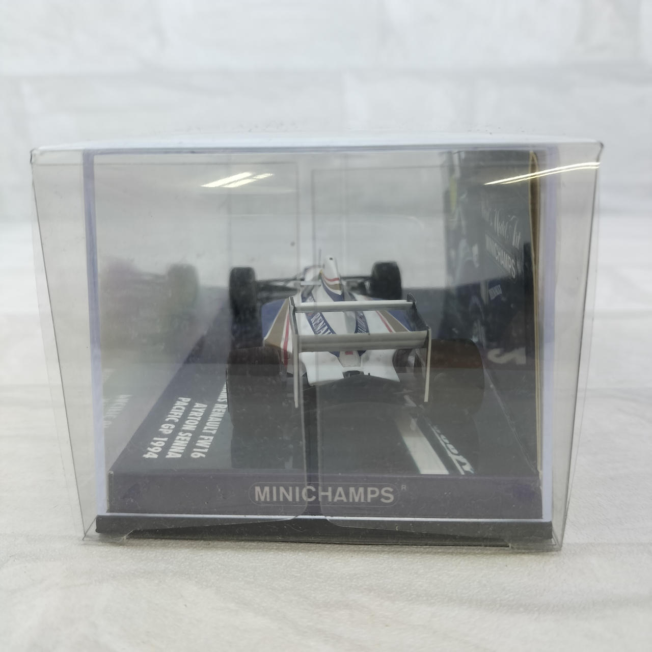 1/43スケールというサイズながら、フロントウィングの複雑な形状や、当時の特徴である「吊り下げ式」のリアウィングなど、細部まで忠実に再現されています。ダイキャスト製特有の重量感と、塗装の美しさはミニチャンプス(PMA)ブランドならではのクオリティです。