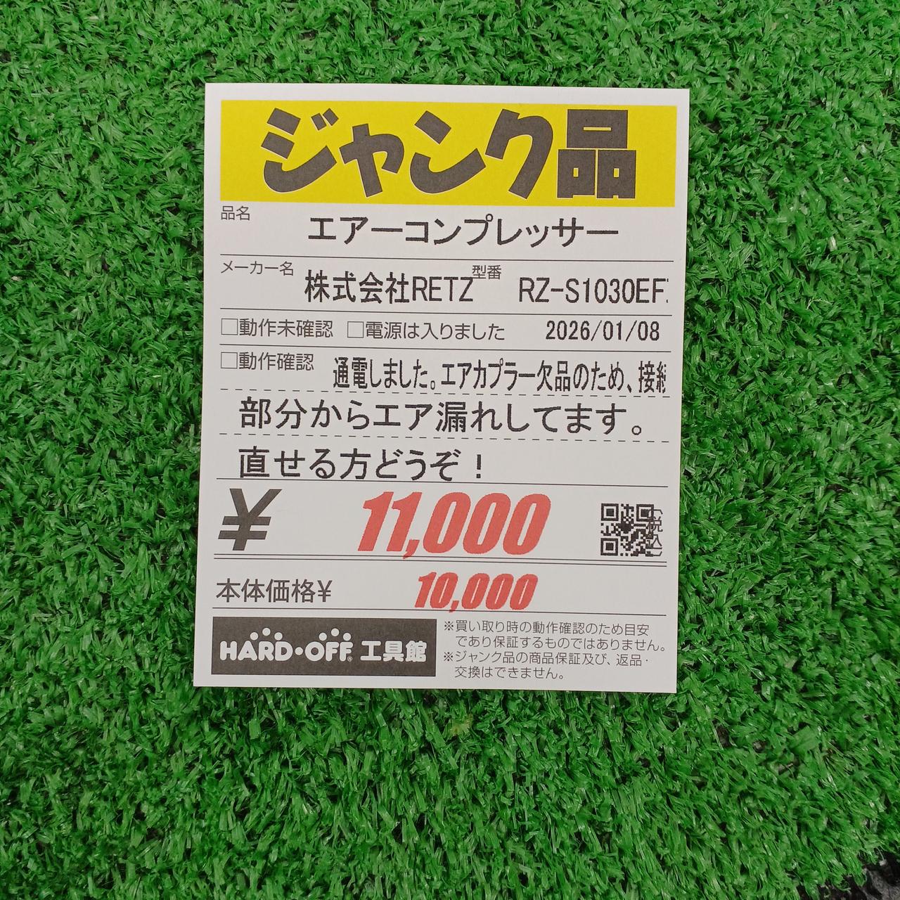 エアカプラー欠品のため、接続部分からエア漏れしてます。 |