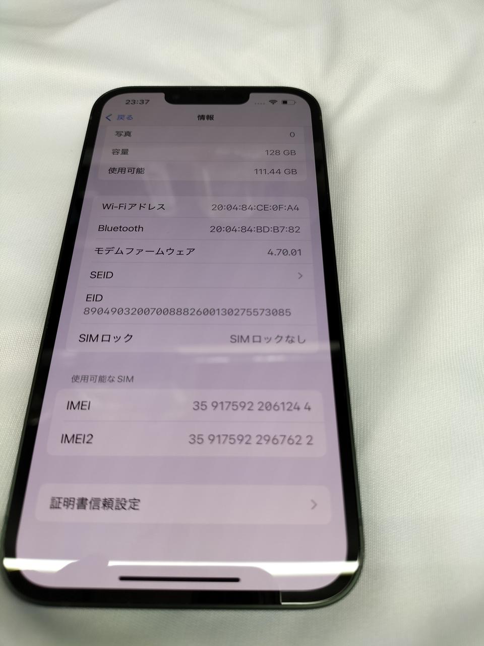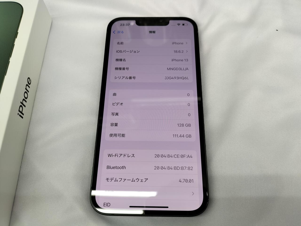 IOS:18,6,2 容量:128GB SIMロック:なし キャリア:SIMフリー バッテリー最大容量:85% |
