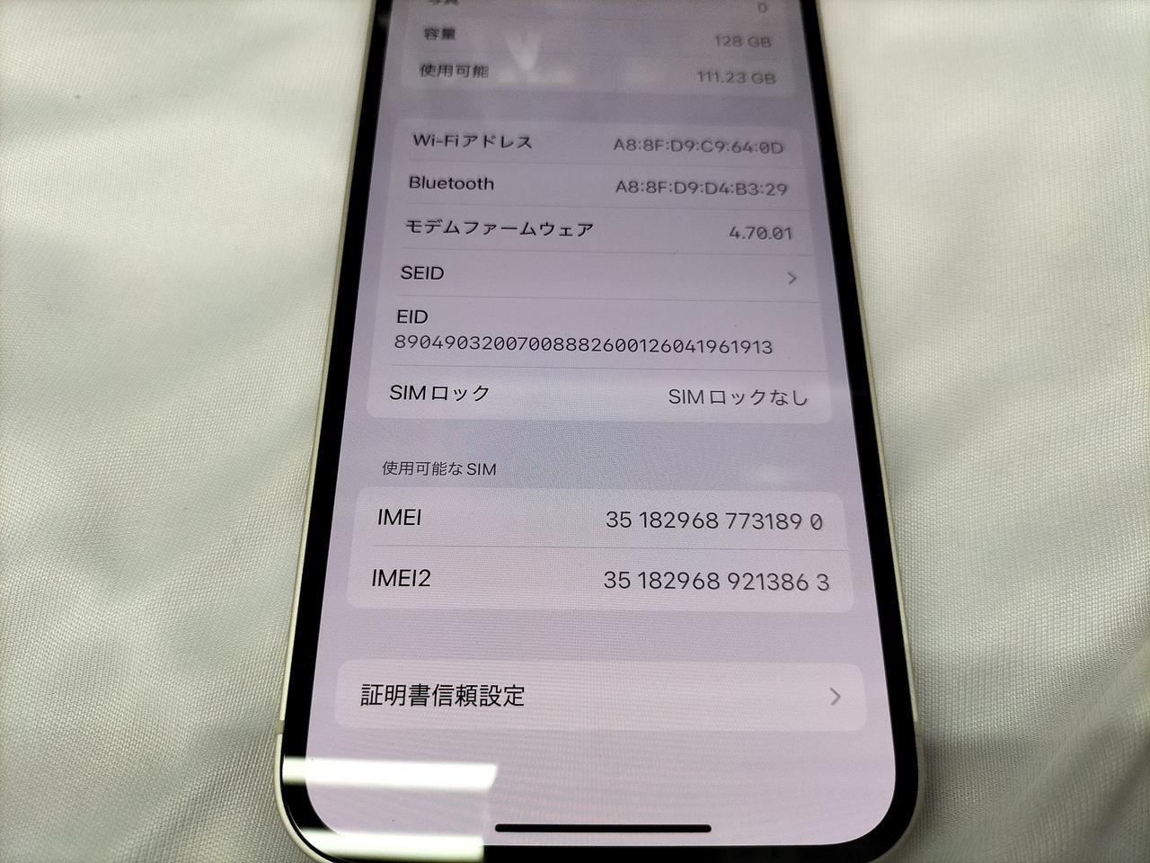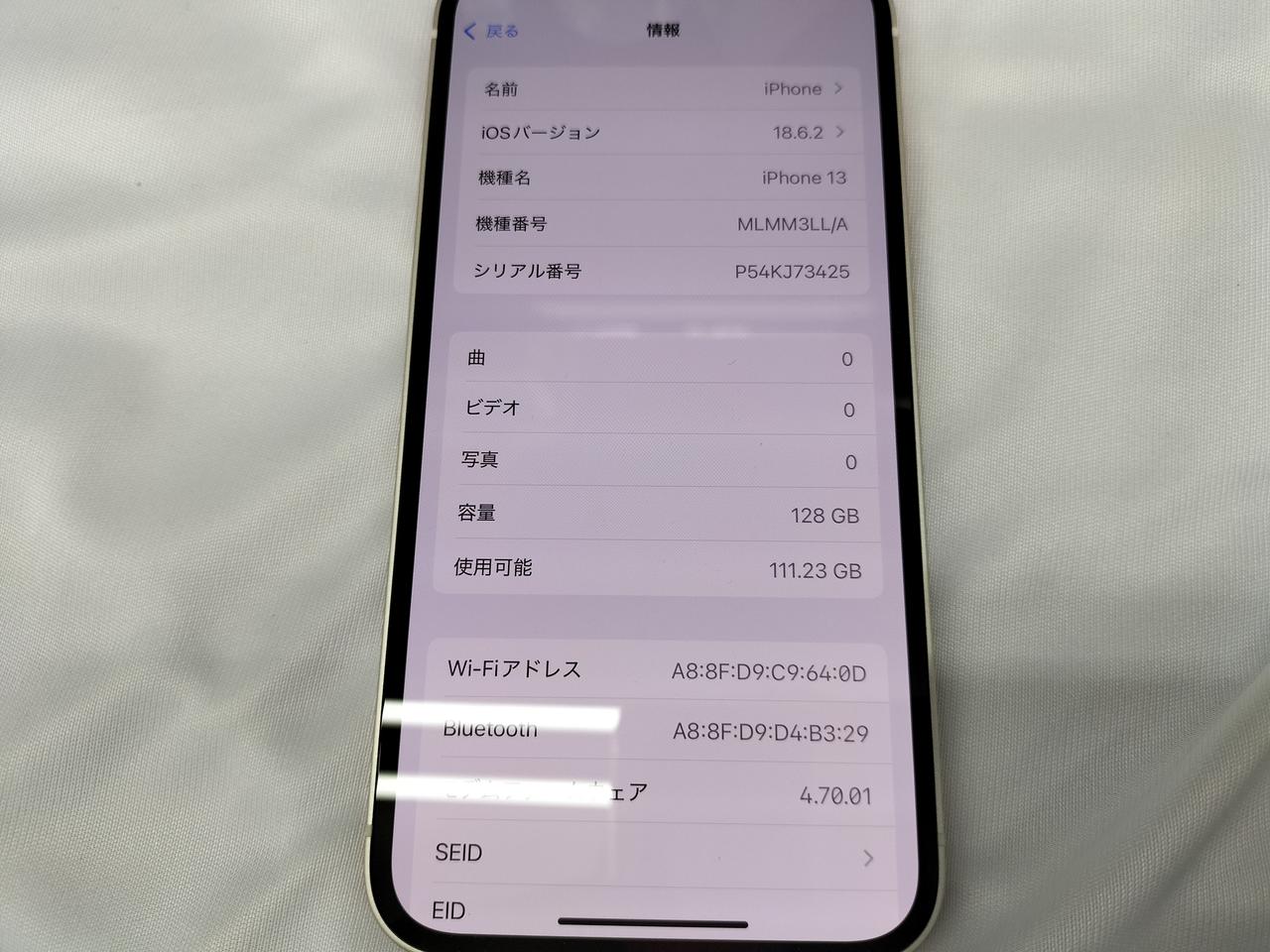 IOS:18.6.2 容量:128GB SIMロック:なし キャリア:SIMフリー バッテリー最大容量:90% |
