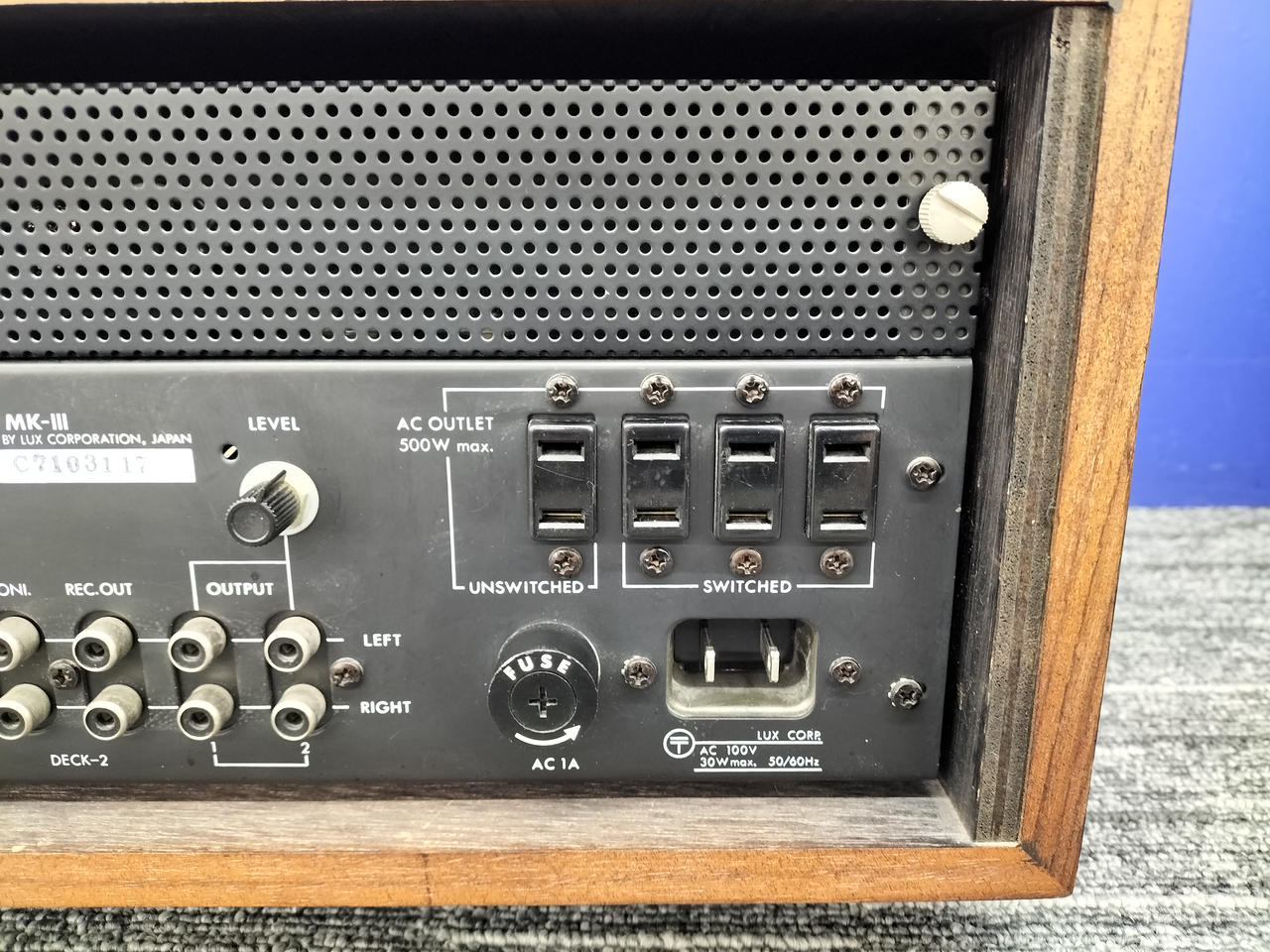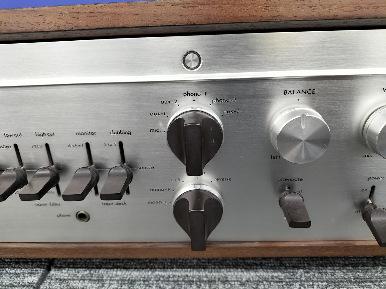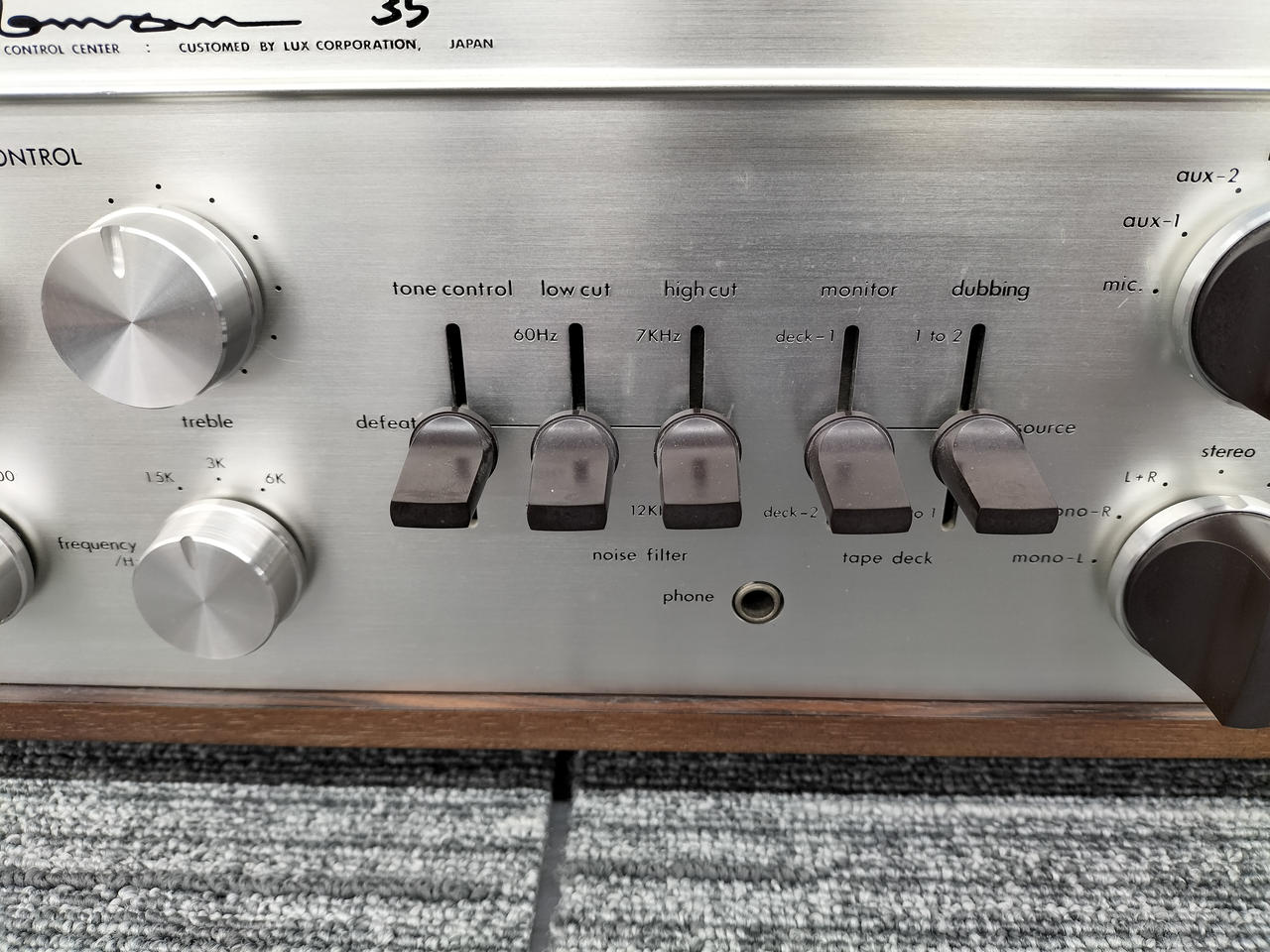 Phono1、2:1.2mV Aux1、3:120mV(可変) Aux2:120mV Mic:0.5mV |