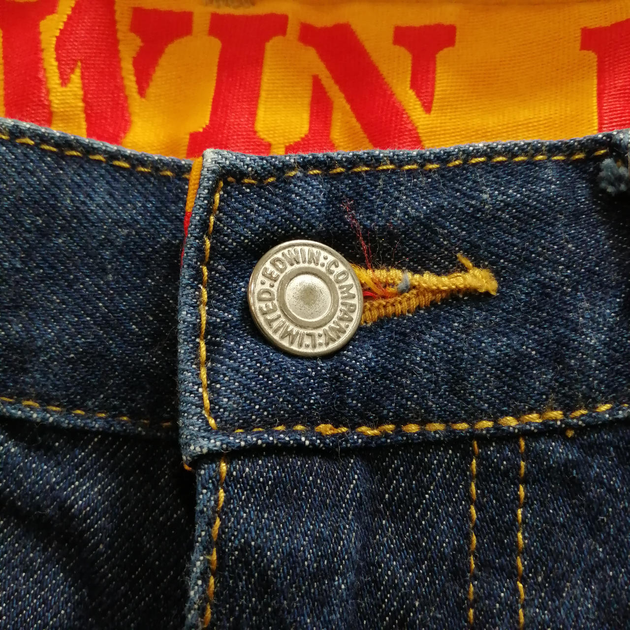 エドウィンのイエロータブデニムパンツになります。まだまだご着用いただけます。 |