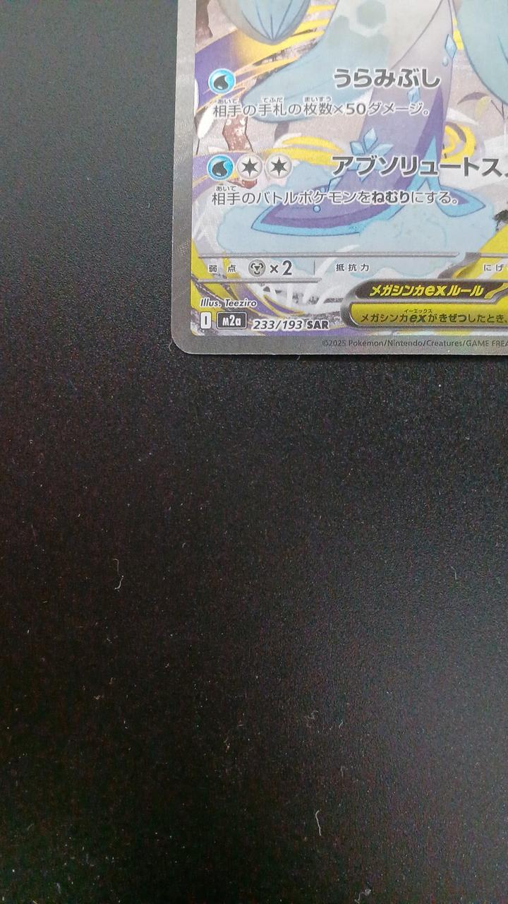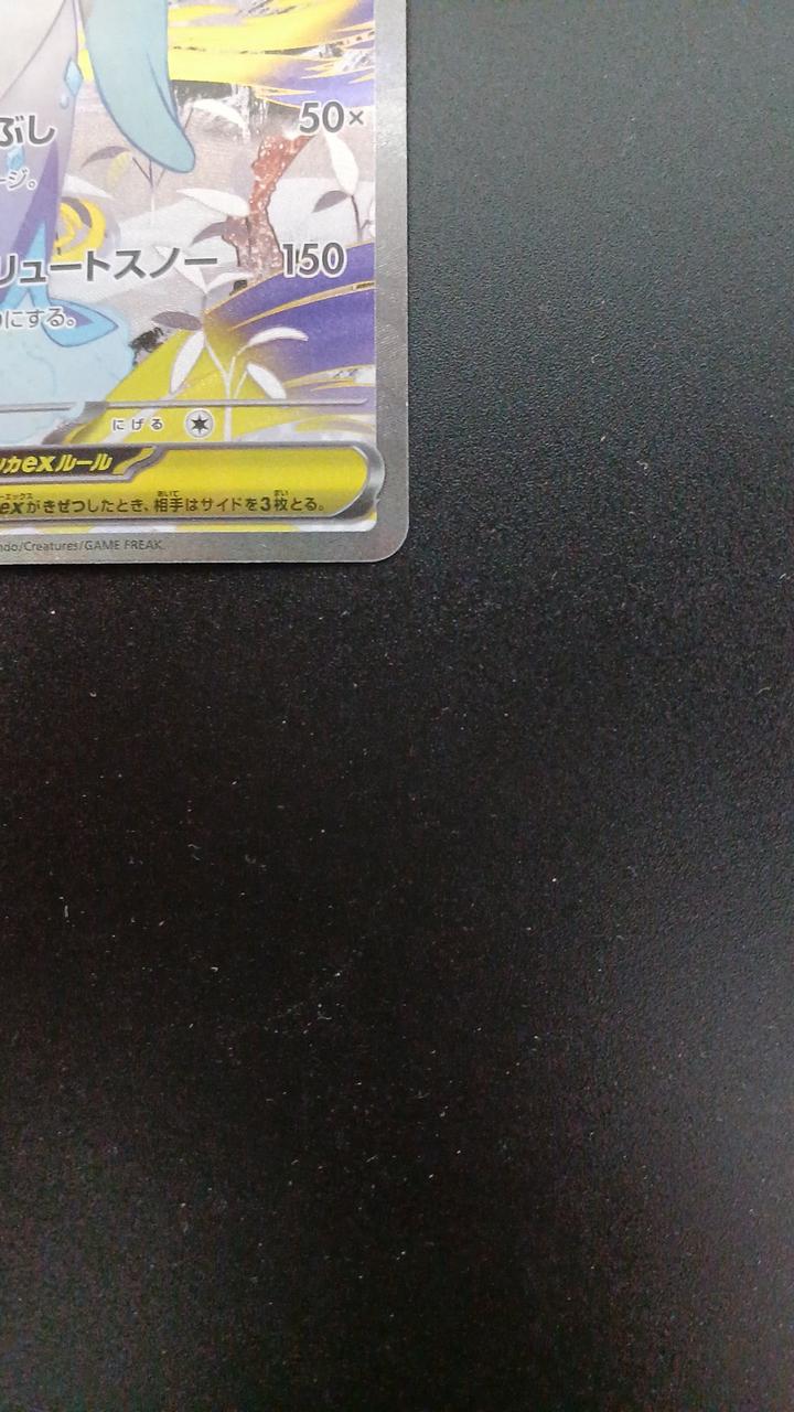 表面左角と裏面左角に白かけが見受けられます。反りがあります。画像を確認の上プレイ用でお願いします。 |
