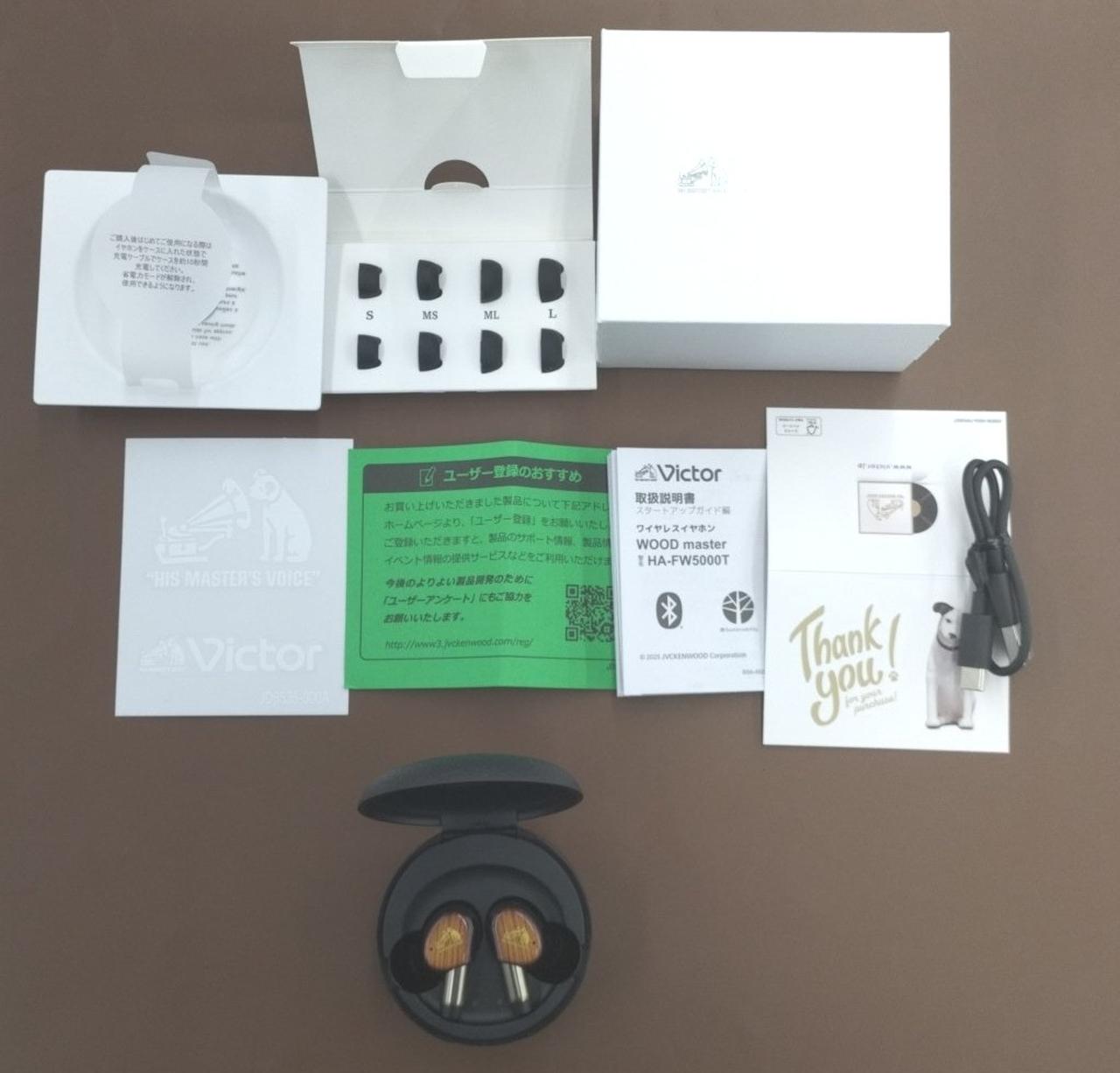 イヤーピース(S/MS/M/ML/L)各2個、充電ケース、充電用USBケーブル・ロゴステッカー |