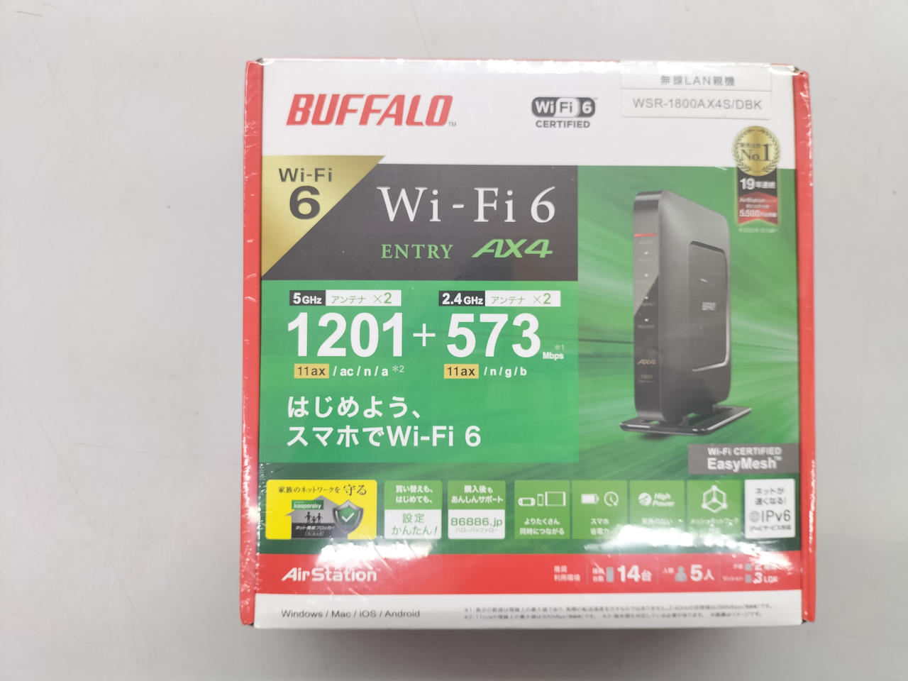 WI-FI 6 (11AX) 接続環境:2階建て(戸建て)/3LDK(マンション)/14台/5人 周波数:2.4/5GHZ IPV6 セキュリティ規格:WPA/WPA2/WPA3/WEP |