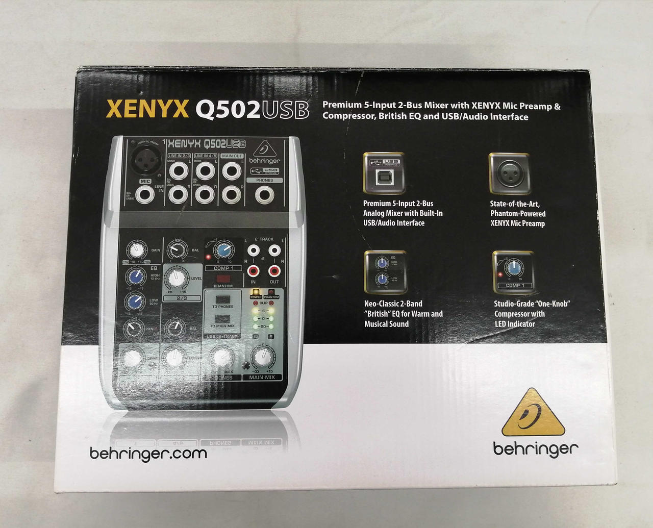 USBオーディオインターフェイスを搭載した手のひらサイズの5入力アナログミキサー。EQ、ワンノブ・コンプレッサーも内蔵し、高品質なミックスを手軽に実現。