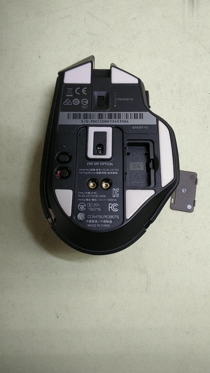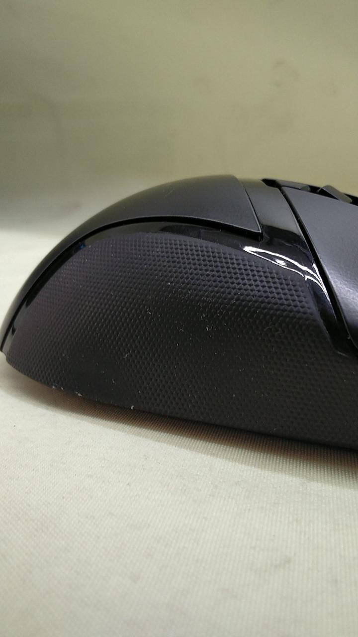 マウスのサイドグリップの滑り止めパーツが痛んでます。 |