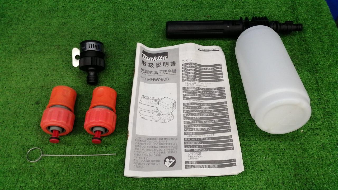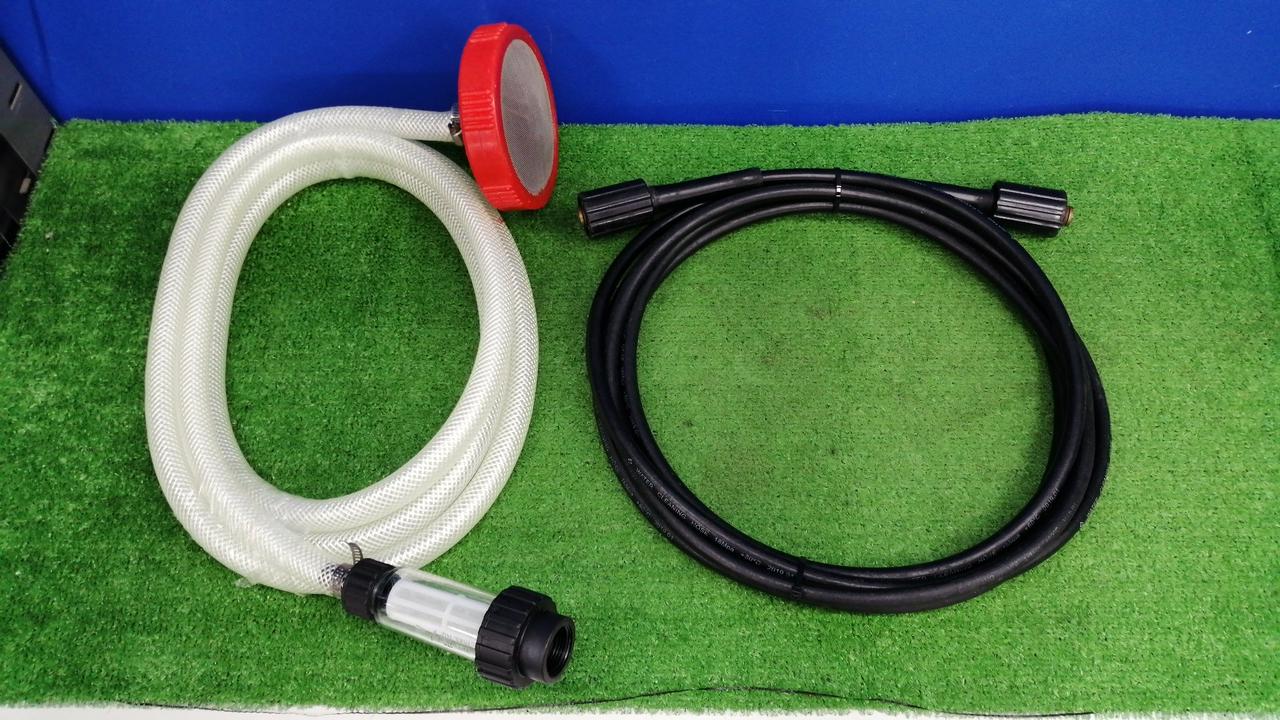 高圧ホース5m、自吸ホースセット、トリガガン、洗浄ブラシ、サイクロンジェットノズル、バリオスプレーランス |