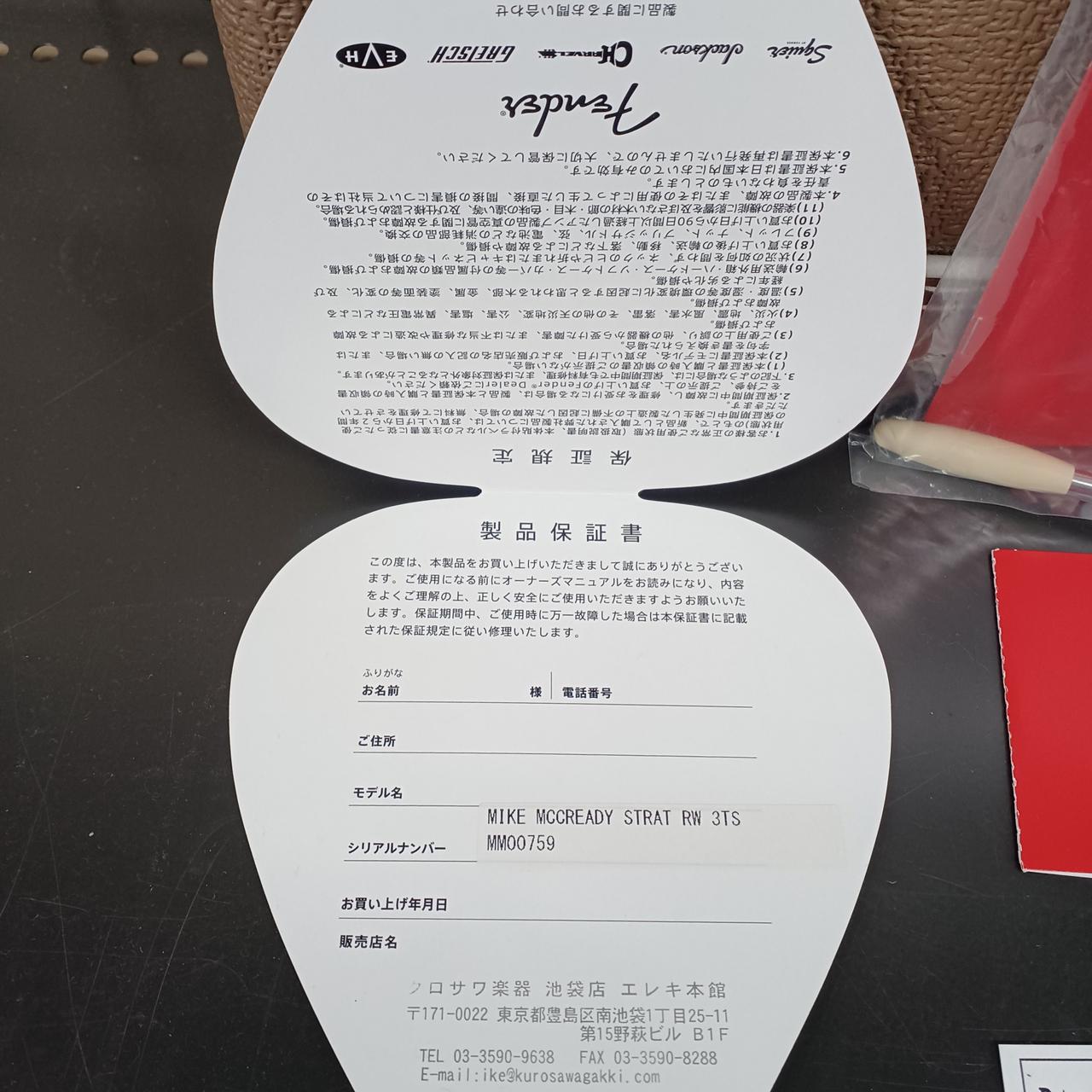 型番:MIKE MCCREDY STRAT RW 3TS