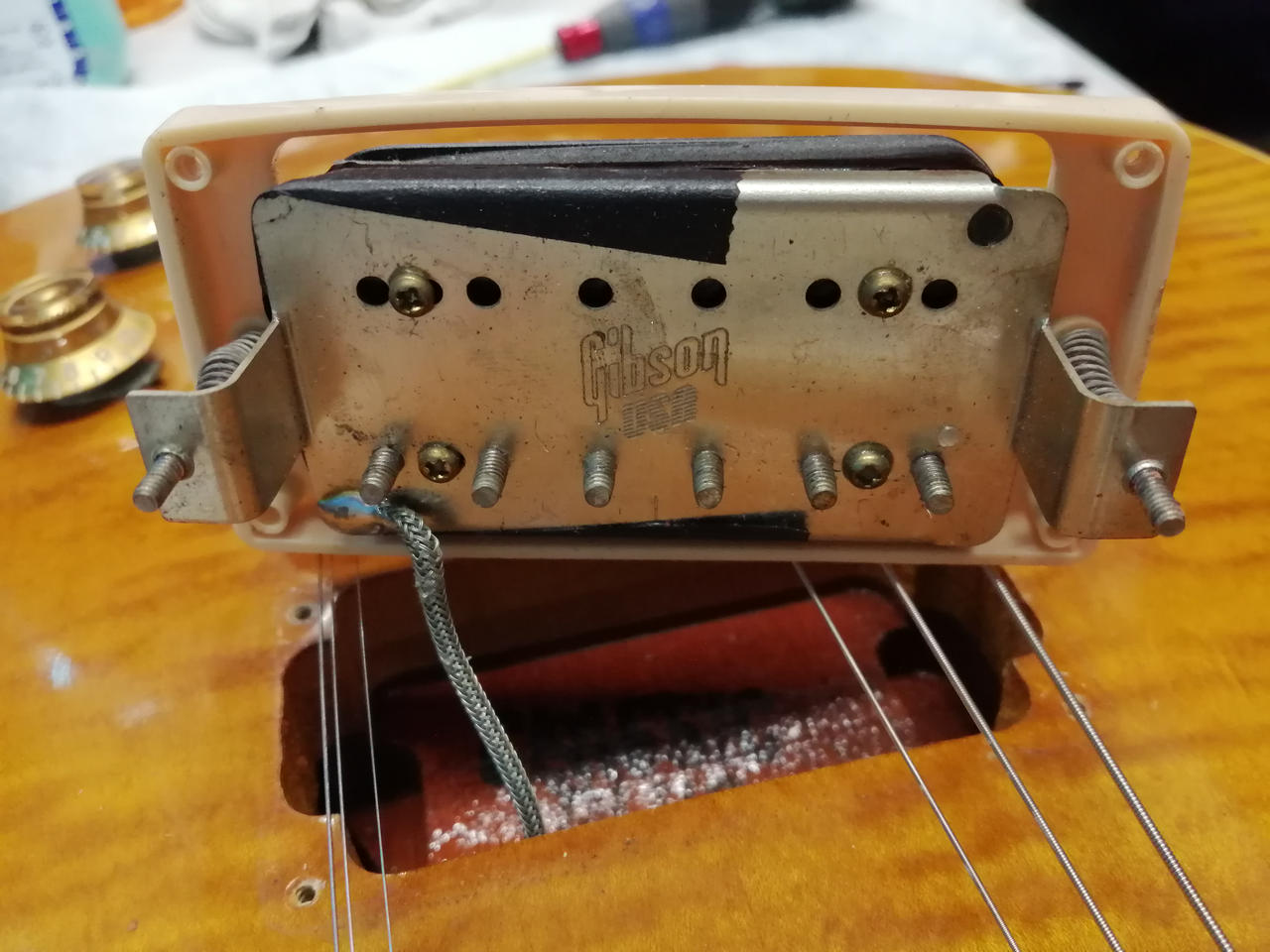 ピックアップは、GIBSONの90年代の物ではないかと推測されます。画像をご確認ください。 |