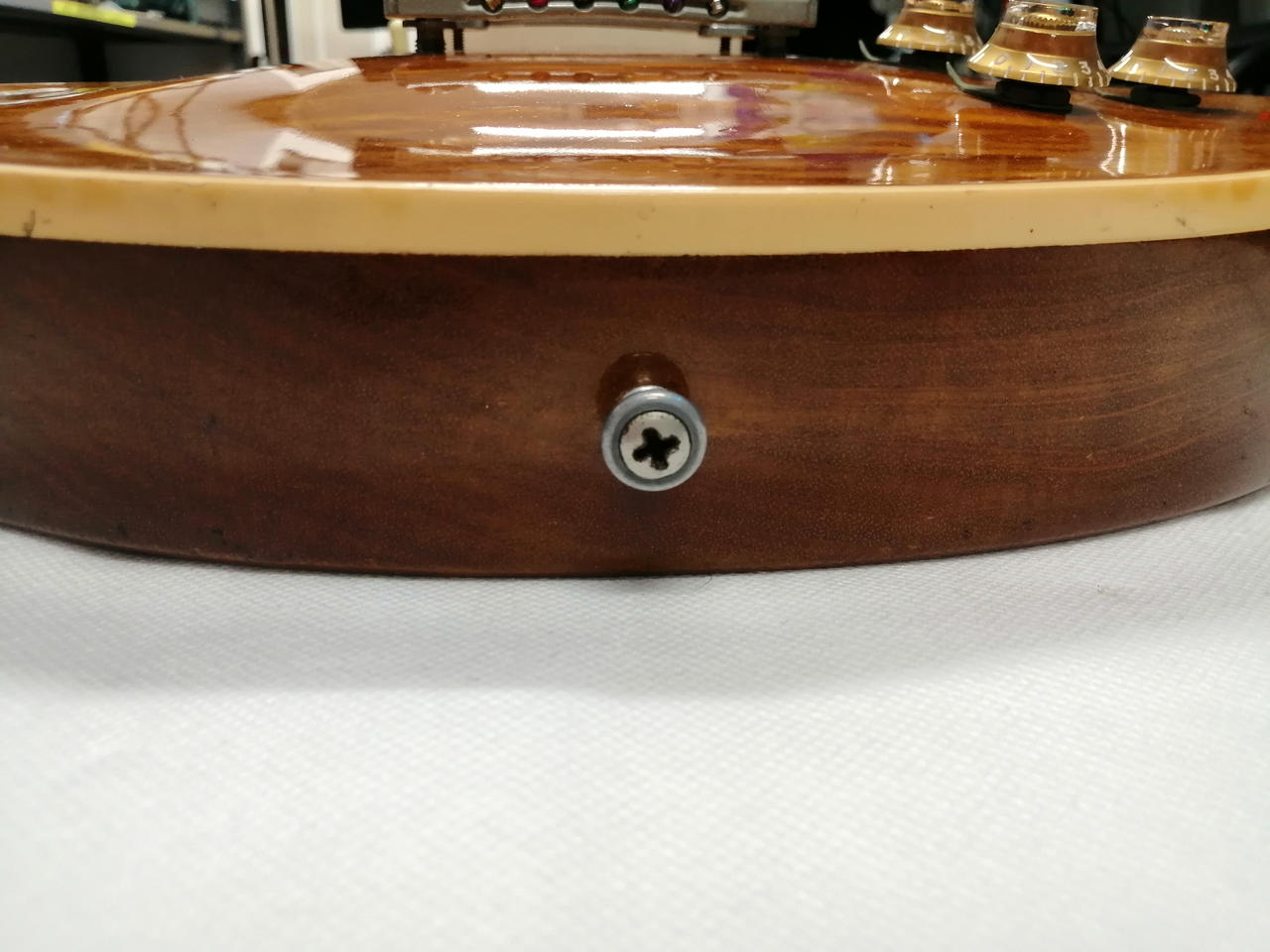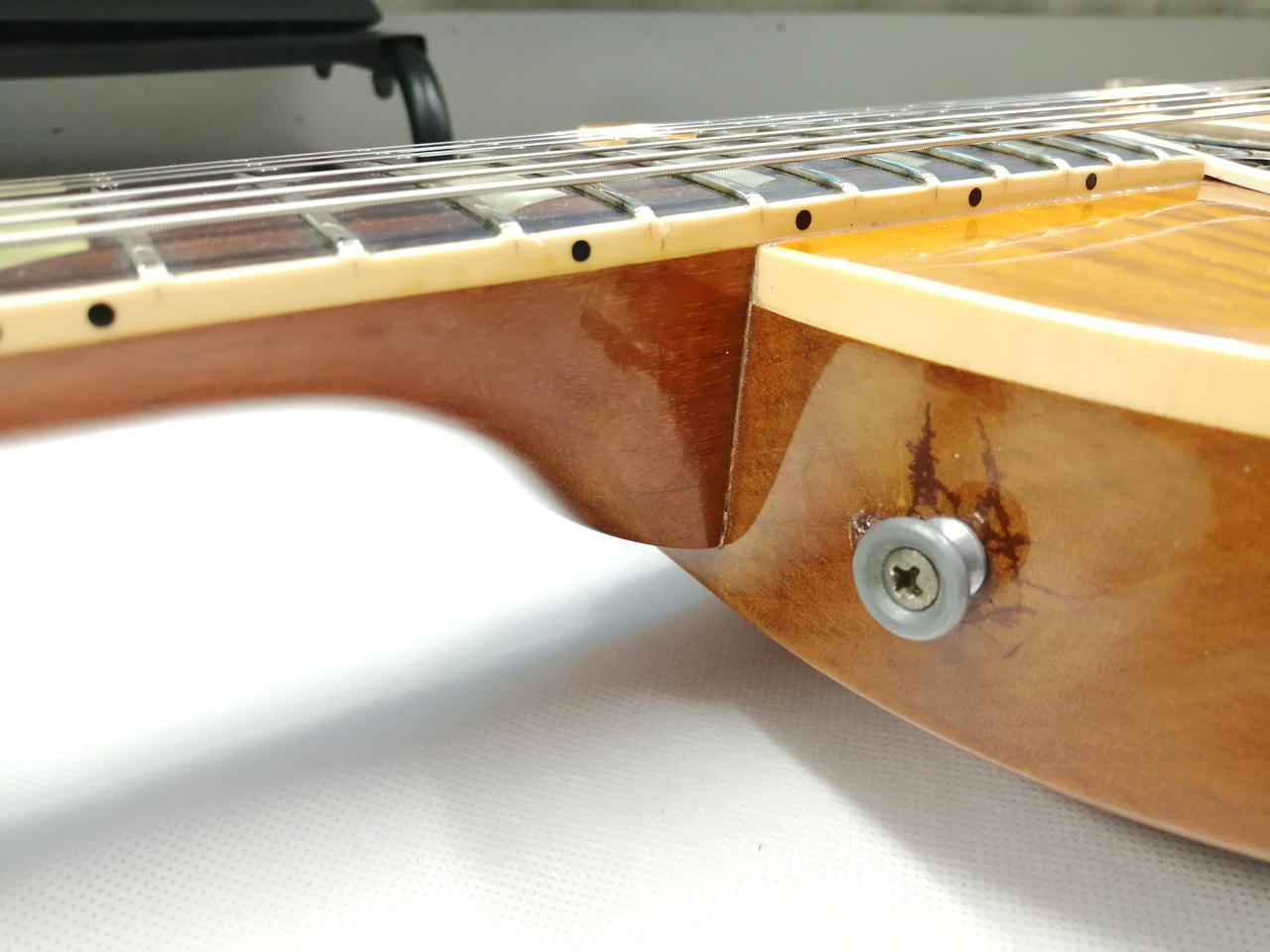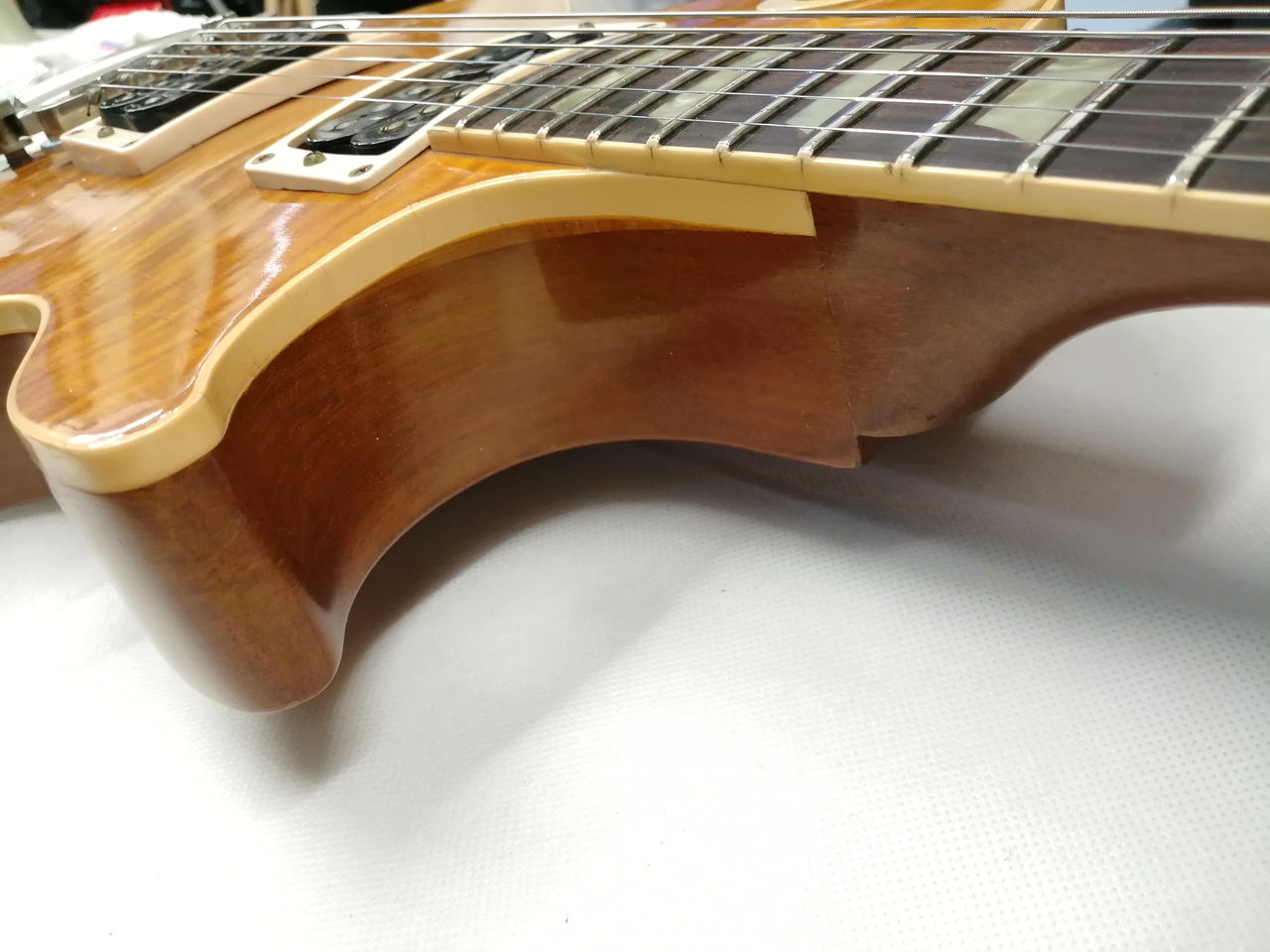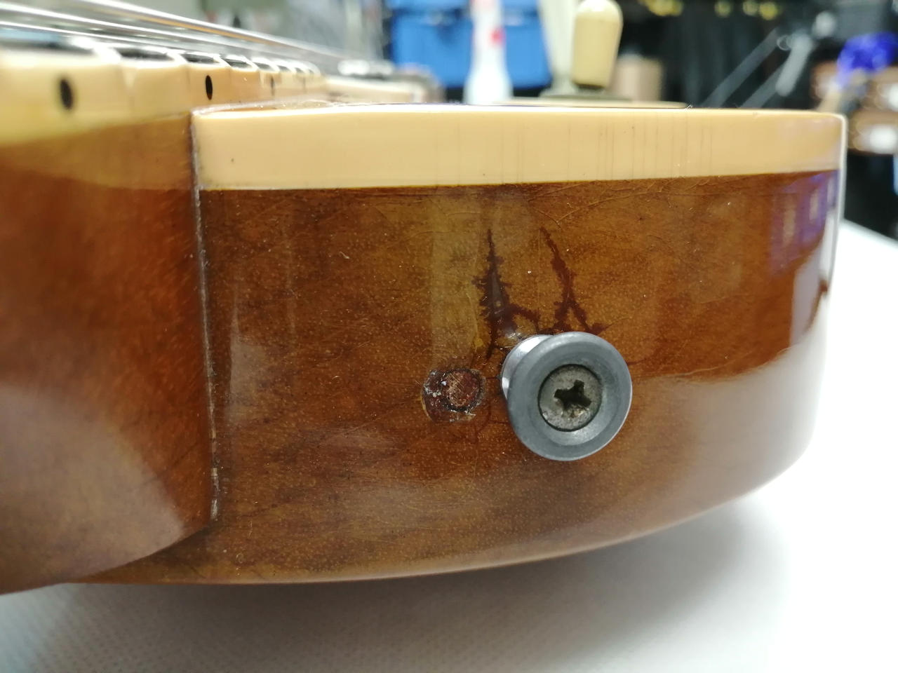 ※ボディ上部のストラップピンが移設されており、穴埋め跡があります(写真20枚目) |