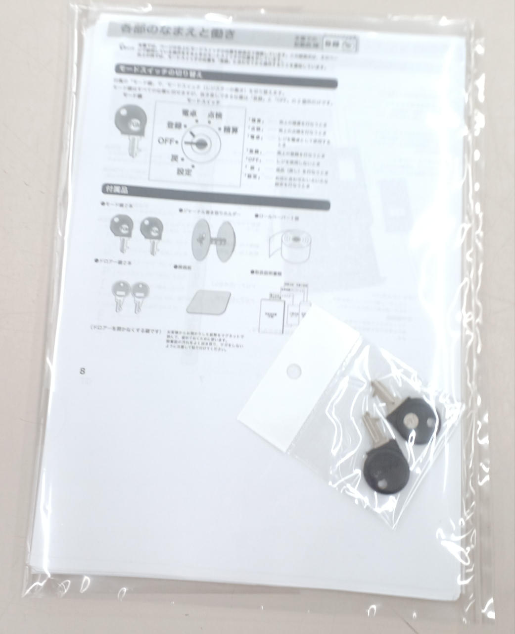 取扱説明書、キー2本、替えレジロール付き |