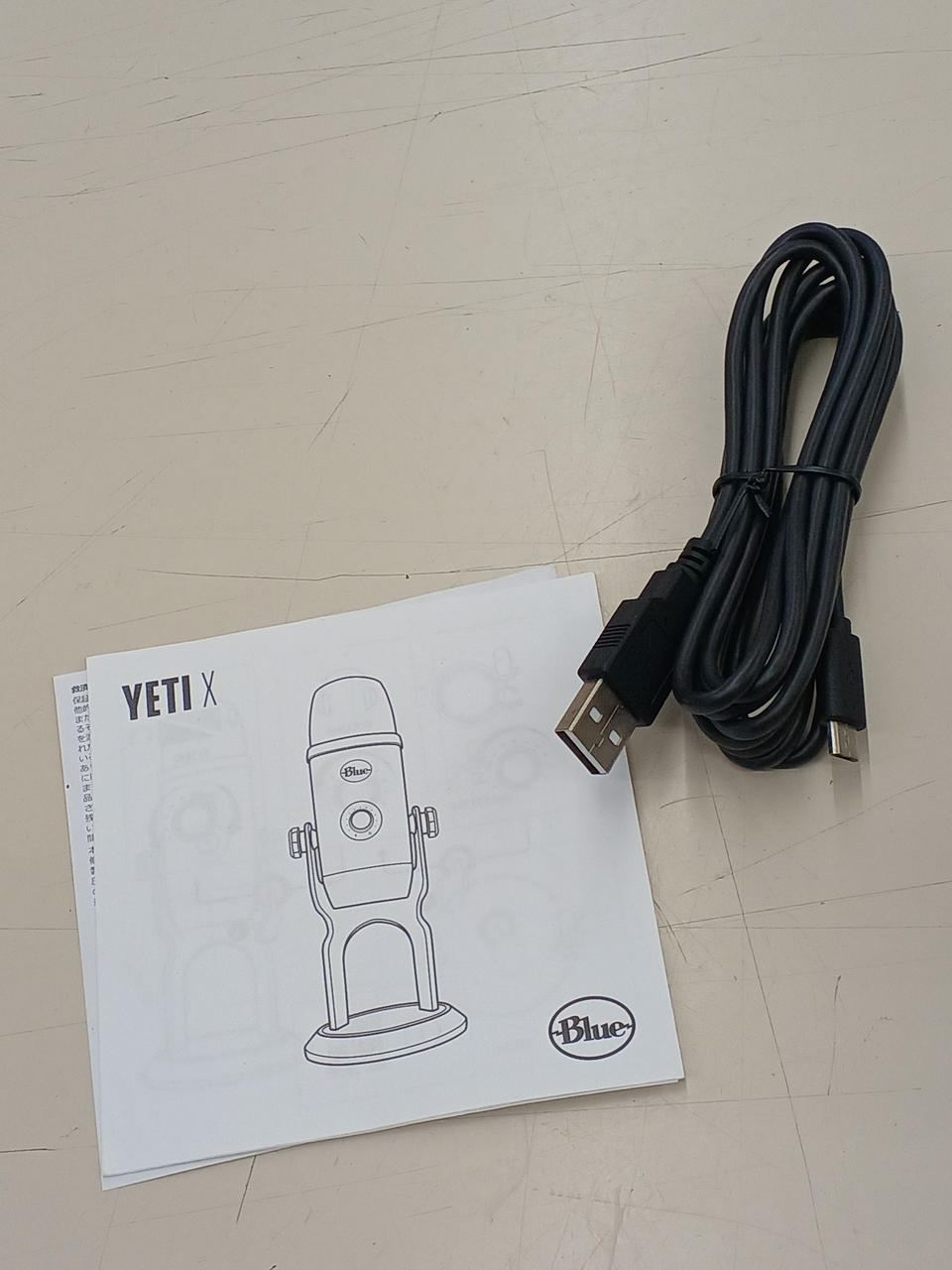 USBケーブル、説明書。 |