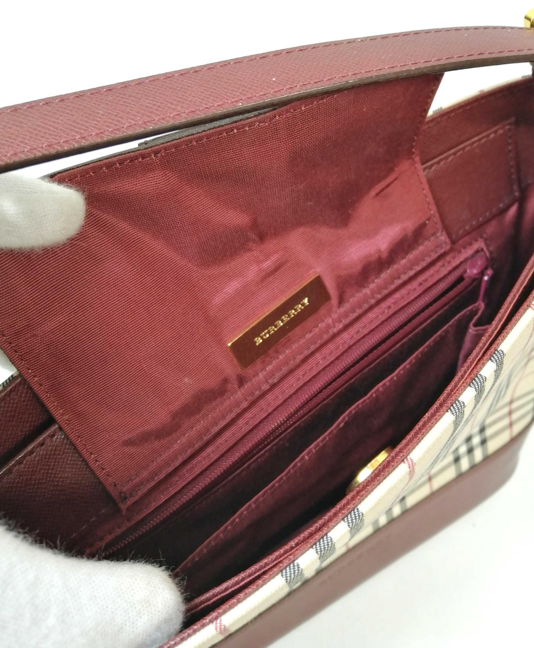 バーバリーのエンジ色デザインが可愛いです。