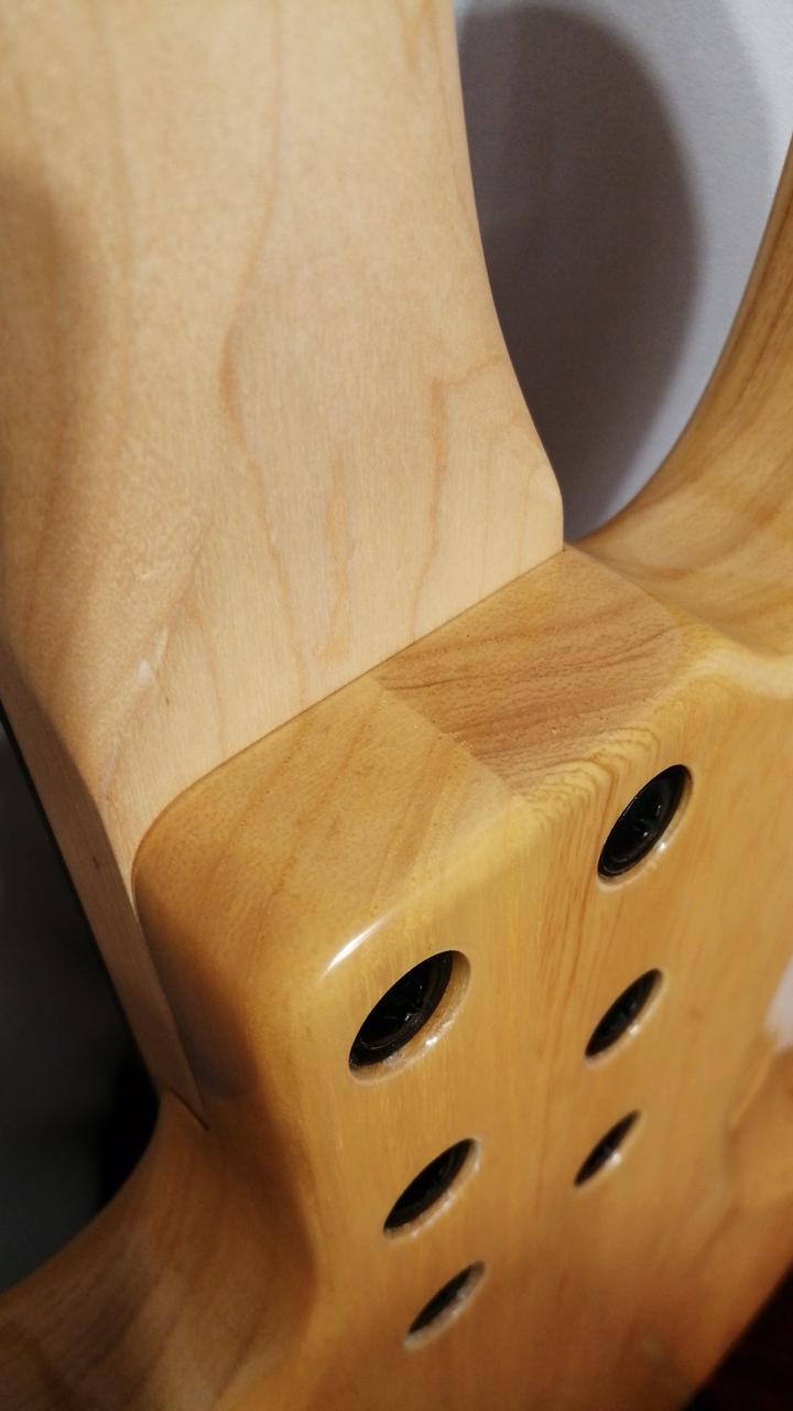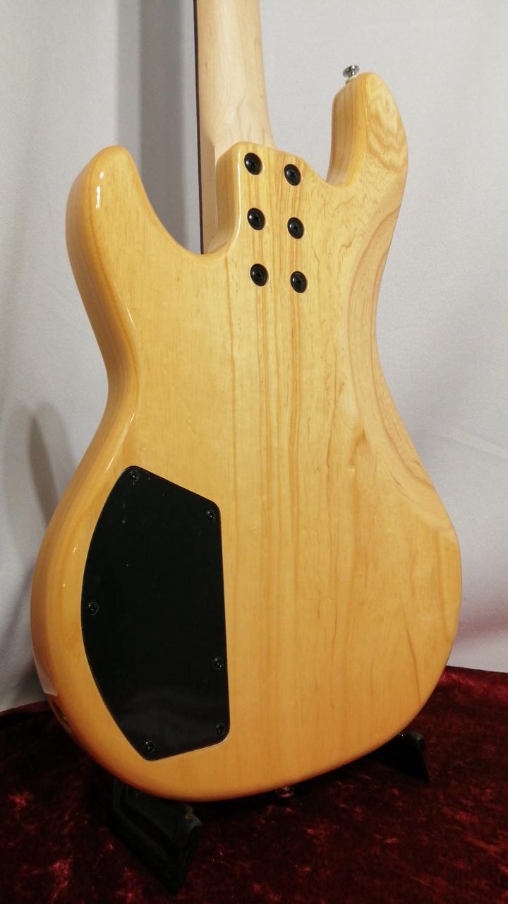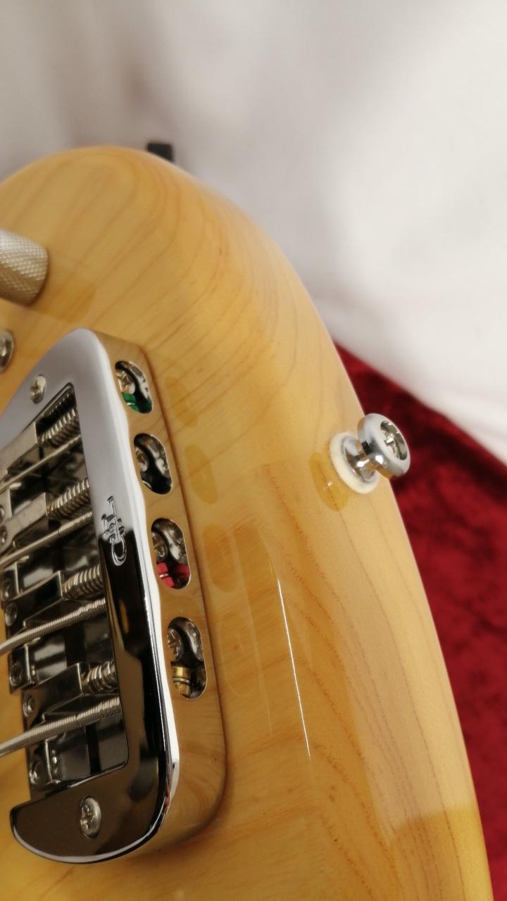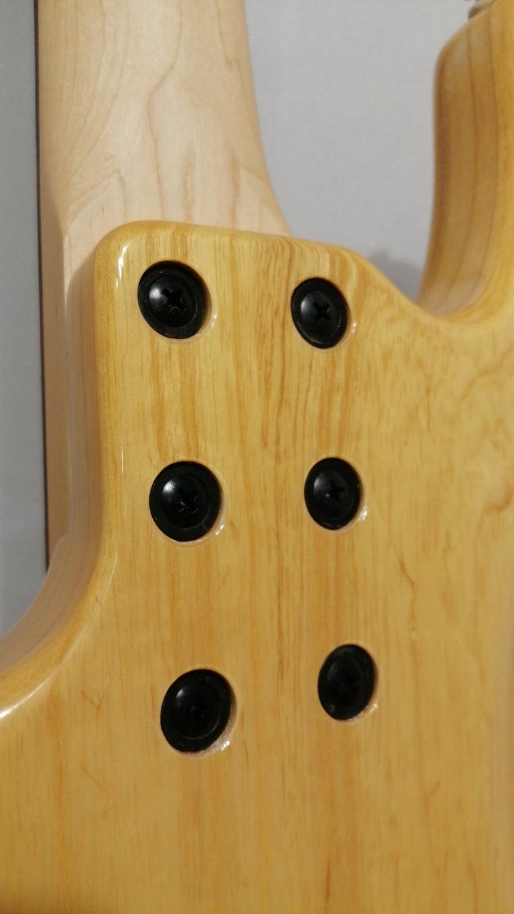 オリジナルハムP.Uに3つのミニSWで、PUセレクト、シリーズ/パラレル配列切替、アクティブON/OFF/トレブルブーストが可能。 |