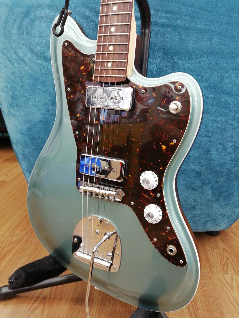 ジャスマスターのプリセットスイッチを廃したシンプルなコントロールで、ブリッジも弦落ちを意識ししっかりと溝切されたタイプなのも嬉しい点です! |