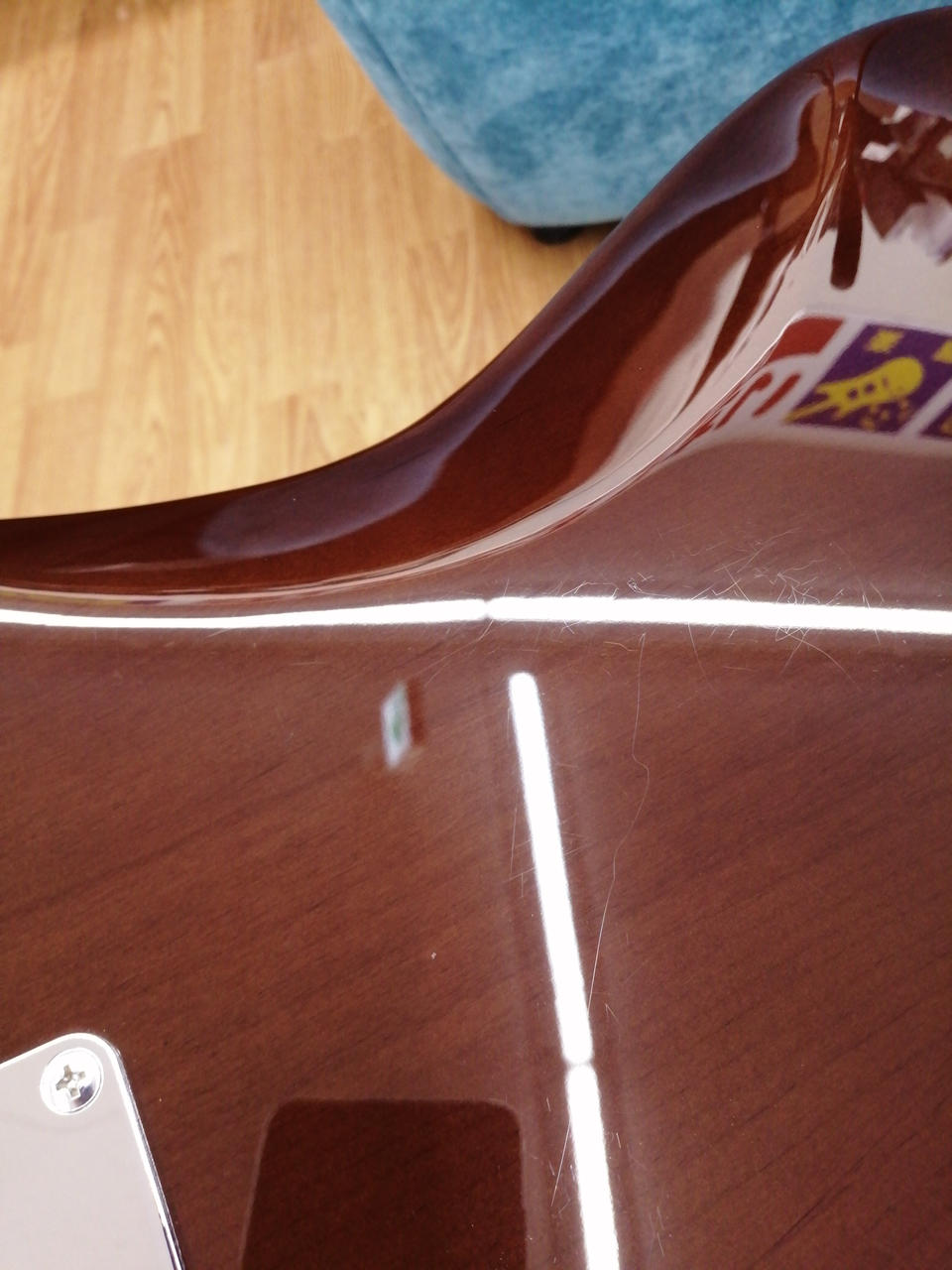 ボディエッジがジャーマンカーブと呼ばれる加工で仕上げられており、退色したレイクプシラッドブルーのようなカラーも魅力です! |