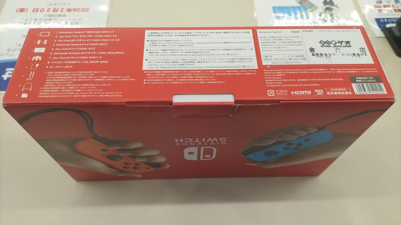 化粧箱・ACアダプター・HDMIケーブル・JOY-CON・ドッグ・JOY-CONストラップ・セーフティガイド付属 |