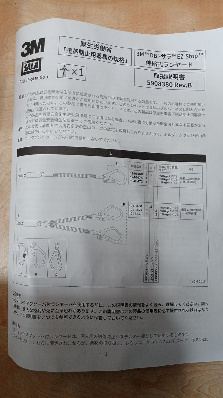 ランヤードのタイプ1(第一種ショックアブソーバ付)です。 |