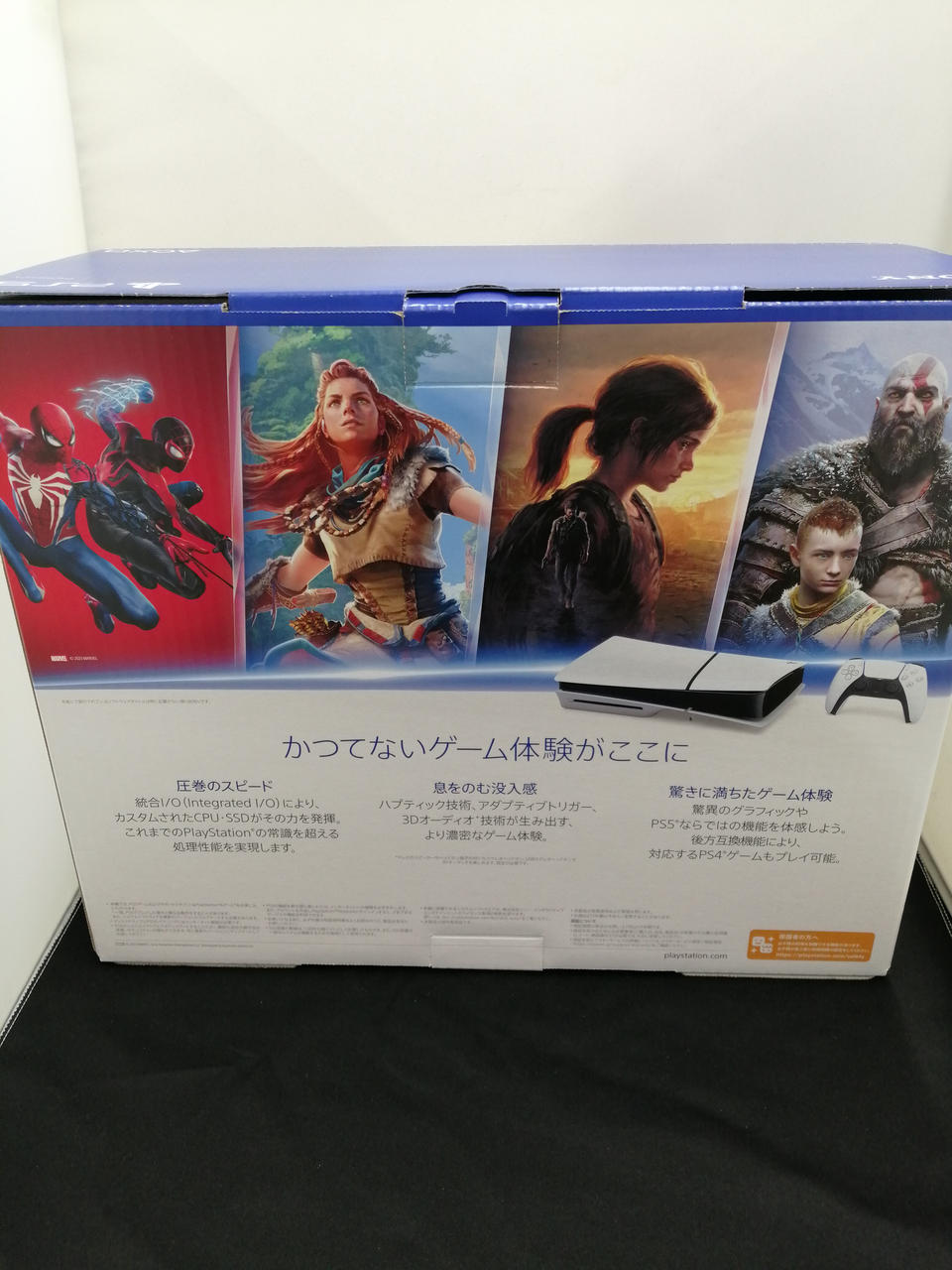 コントローラーの振動技術としてハプティック技術を搭載し、L2・R2ボタンには抵抗力を感じさせるアダプティブトリガーを採用。 |