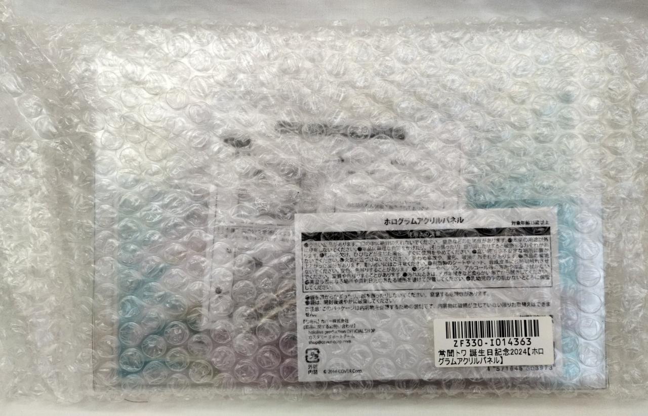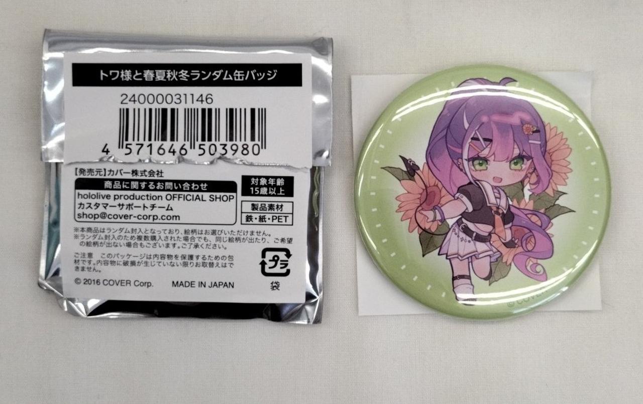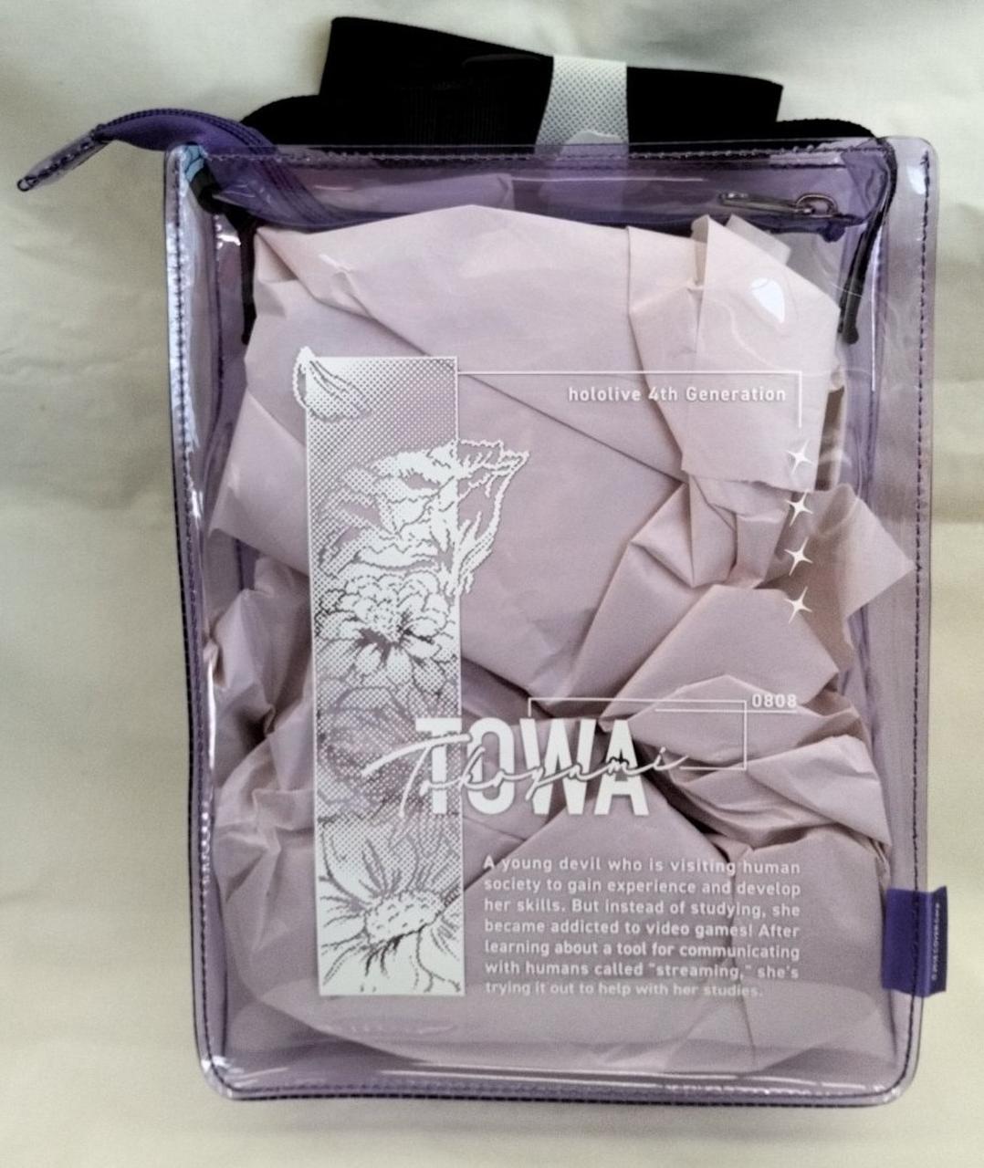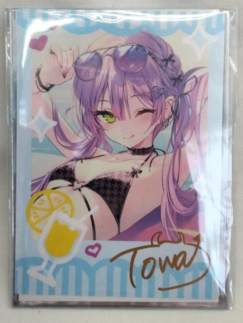 ホログラムアクリルパネル、缶バッジ(夏服ver)、トワ様ぬいぐるみ BYライブ衣装、眷属クリアショルダーバッグ、常闇トワ箔押し複製サイン入り「rurudo描き下ろし チェキ風ブロマイドカード」のセット。(缶バッジのみ開封済みですが、全て未使用品です) |