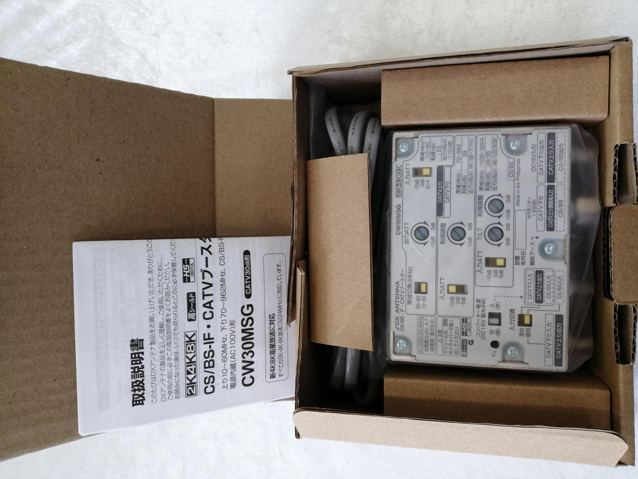 4K8K衛星放送(3224MHZ)、CATV(962MHZ)双方向対応の、CS/BS-IF、CATVを増幅するブースター。 |