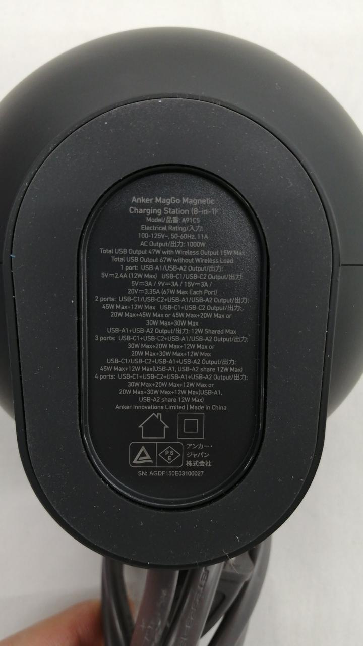 マグネット式ワイヤレス充電パッド (×1)、AC差込口 (×3)、USB-Cポート (×2)、USB-Aポート (×2) |