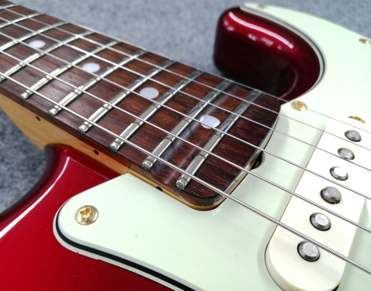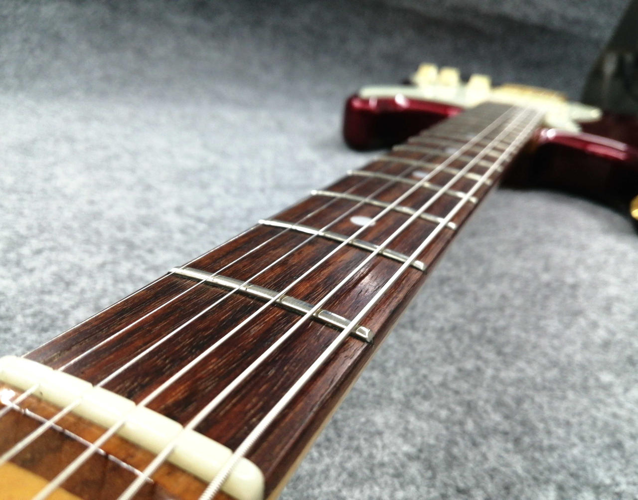 フレット7割程度。ネックストレート。トラスロッド余裕ありです。 |