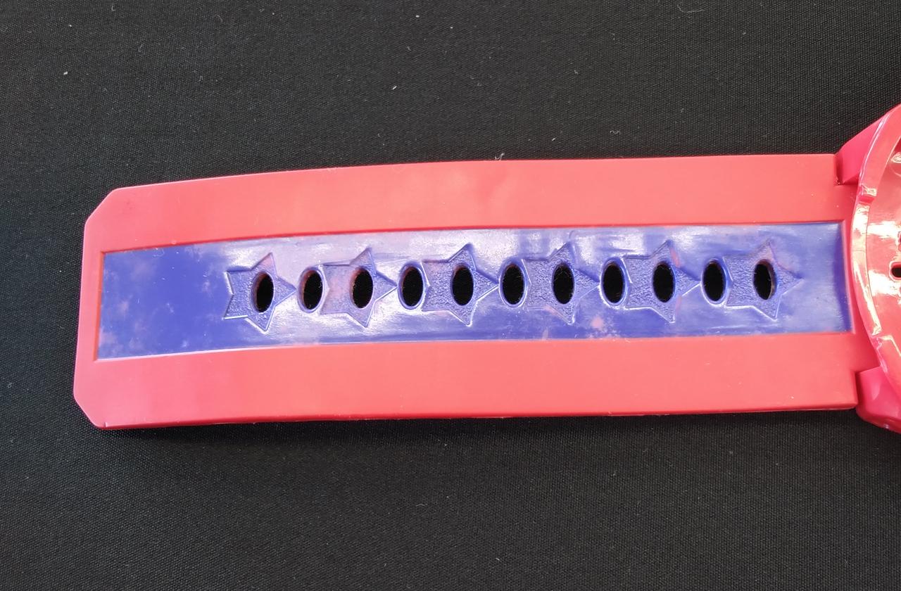 ウォッチのプラスチックカバーや赤いバンド部分など、本体に傷汚れ多し