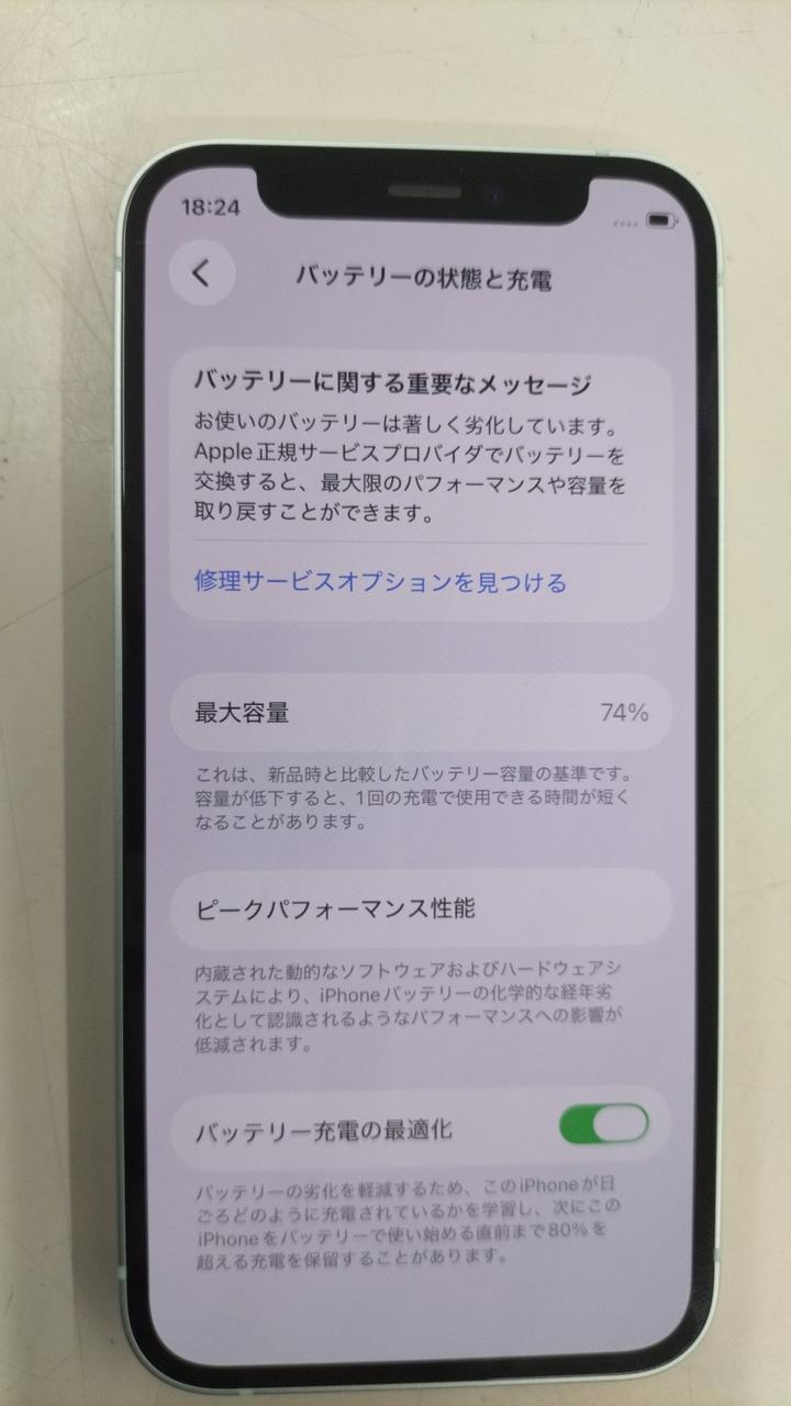 バッテリー最大容量:74%のためジャンク |