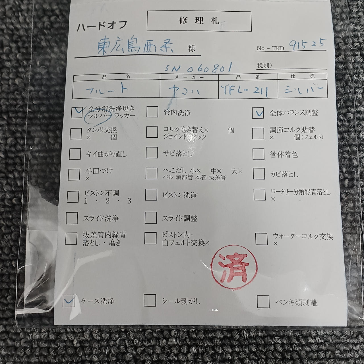 ケース、クリーニングロッド、修理明細付属 |