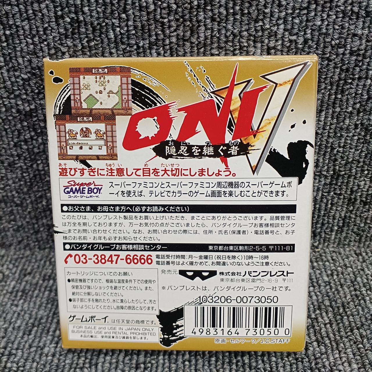 時代劇RPG『ONI』シリーズの第5作。SFC版『鬼神降臨伝ONI』から1年後に発売されたGB版ONIの最終作。 |