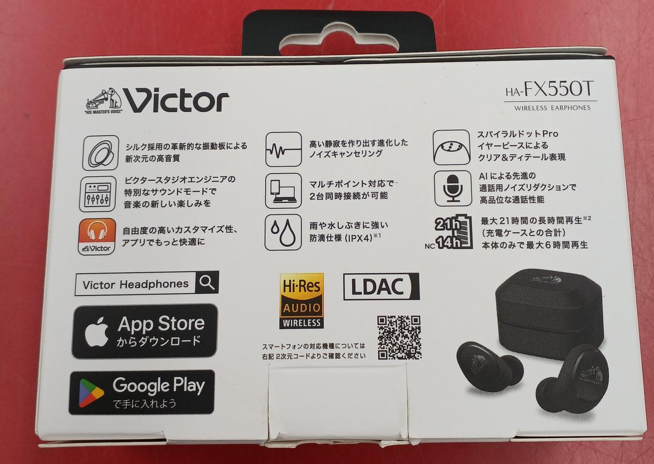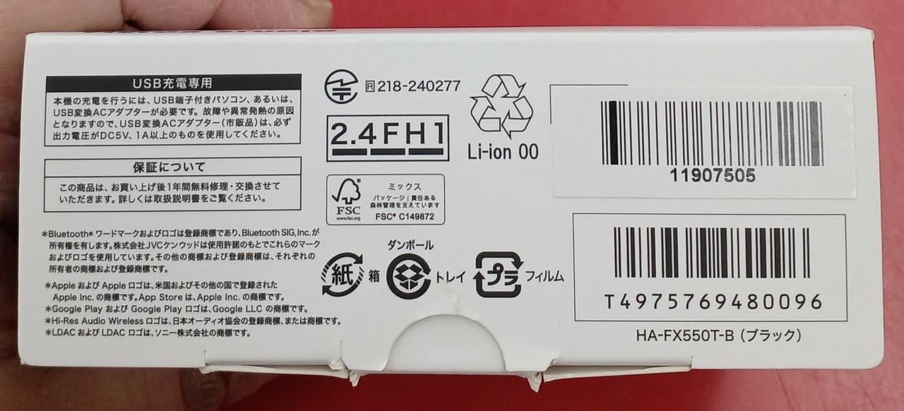 箱・取扱説明書・接続ケーブル・イヤーピース付属。 |