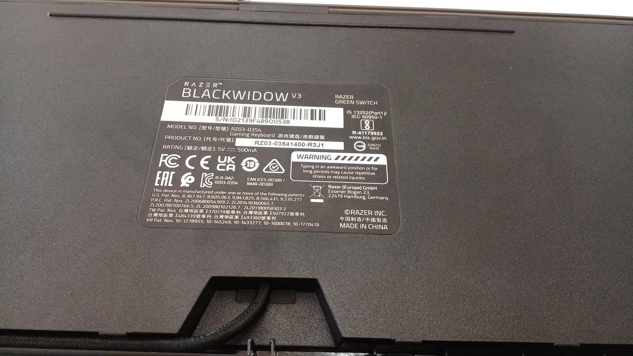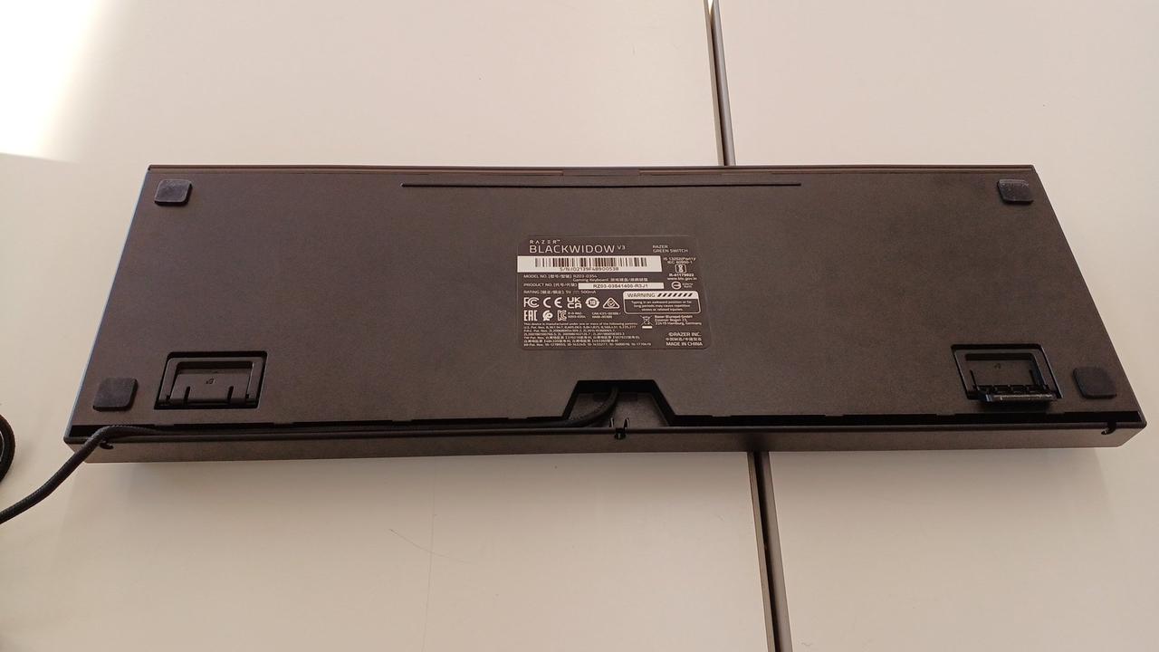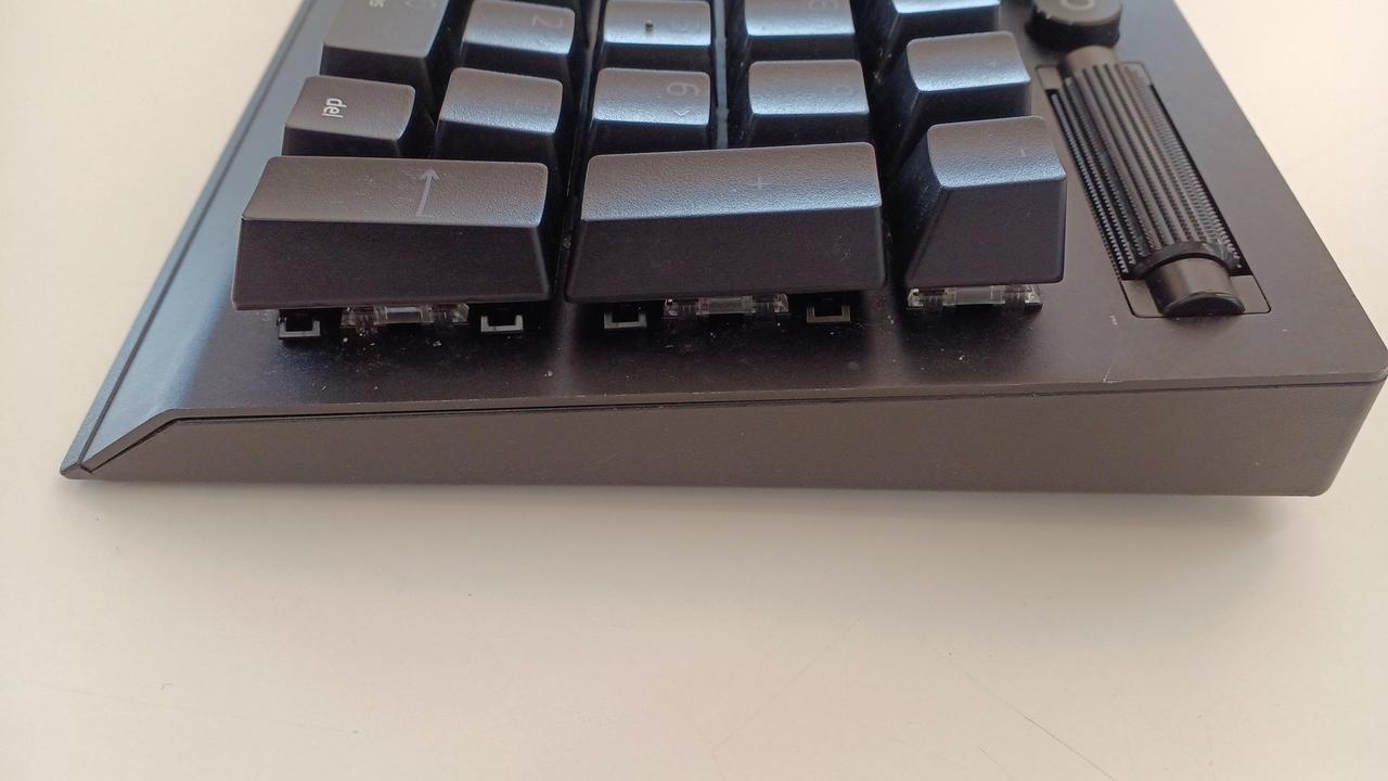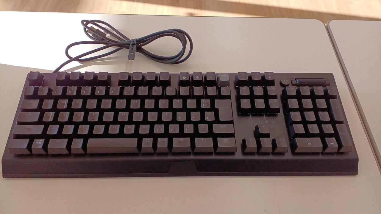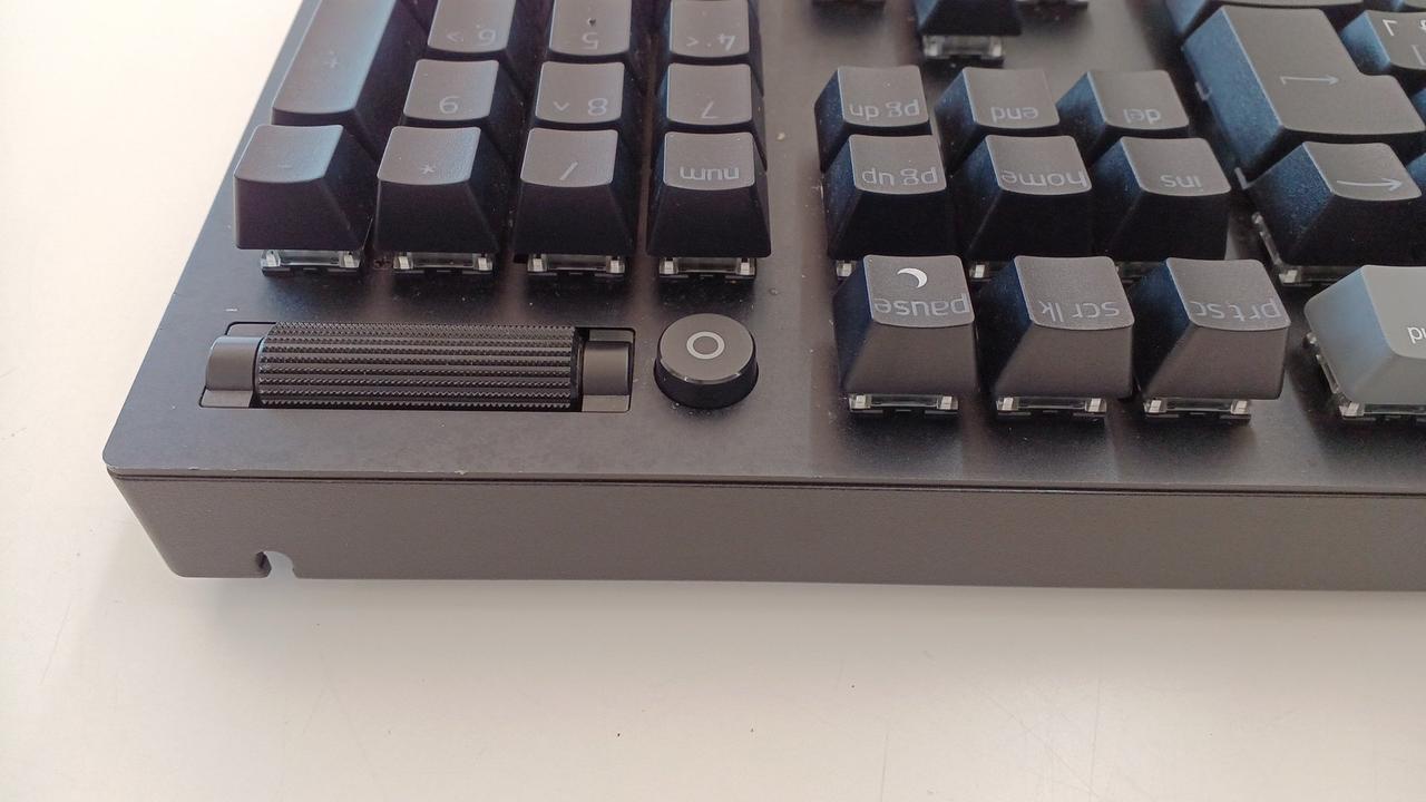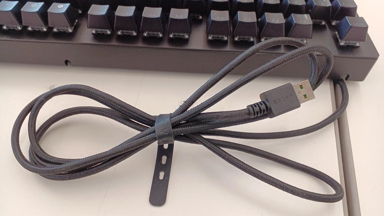 クリック感とタクタイル感のある設計の「グリーンメカニカルスイッチ」を採用した有線ゲーミングキーボード(緑軸)。 |