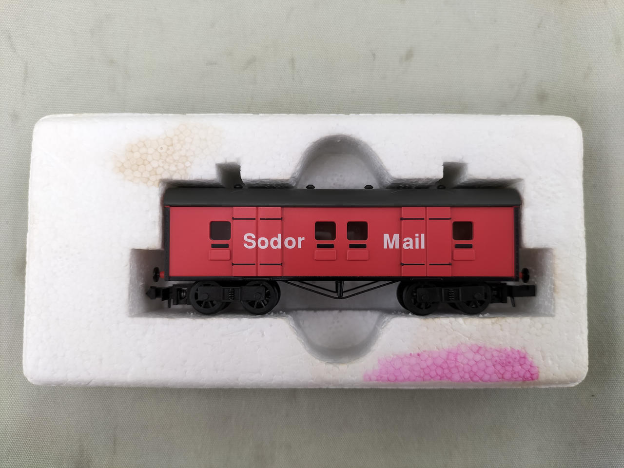 内側発泡スチロールに汚れがあります。 |