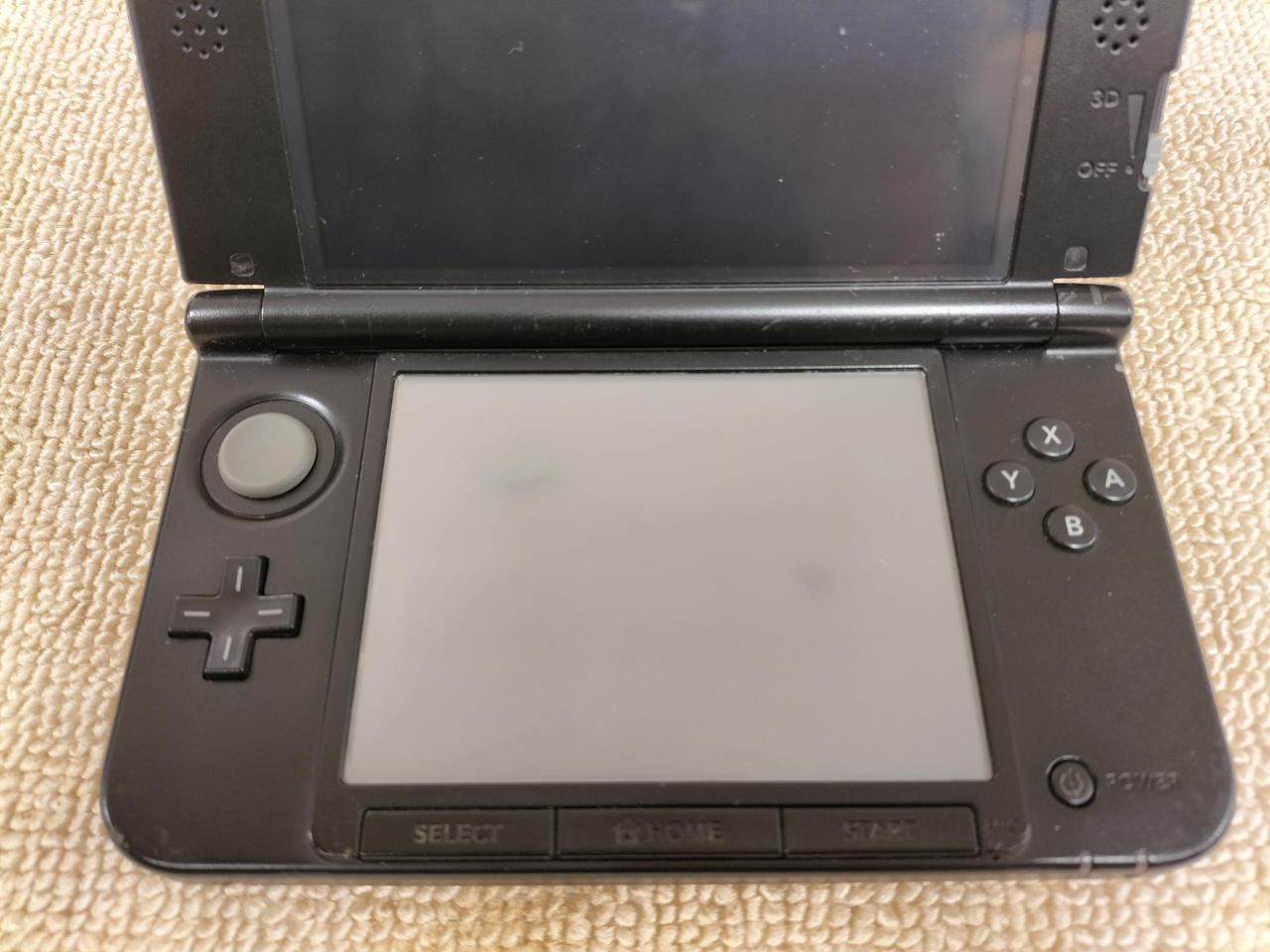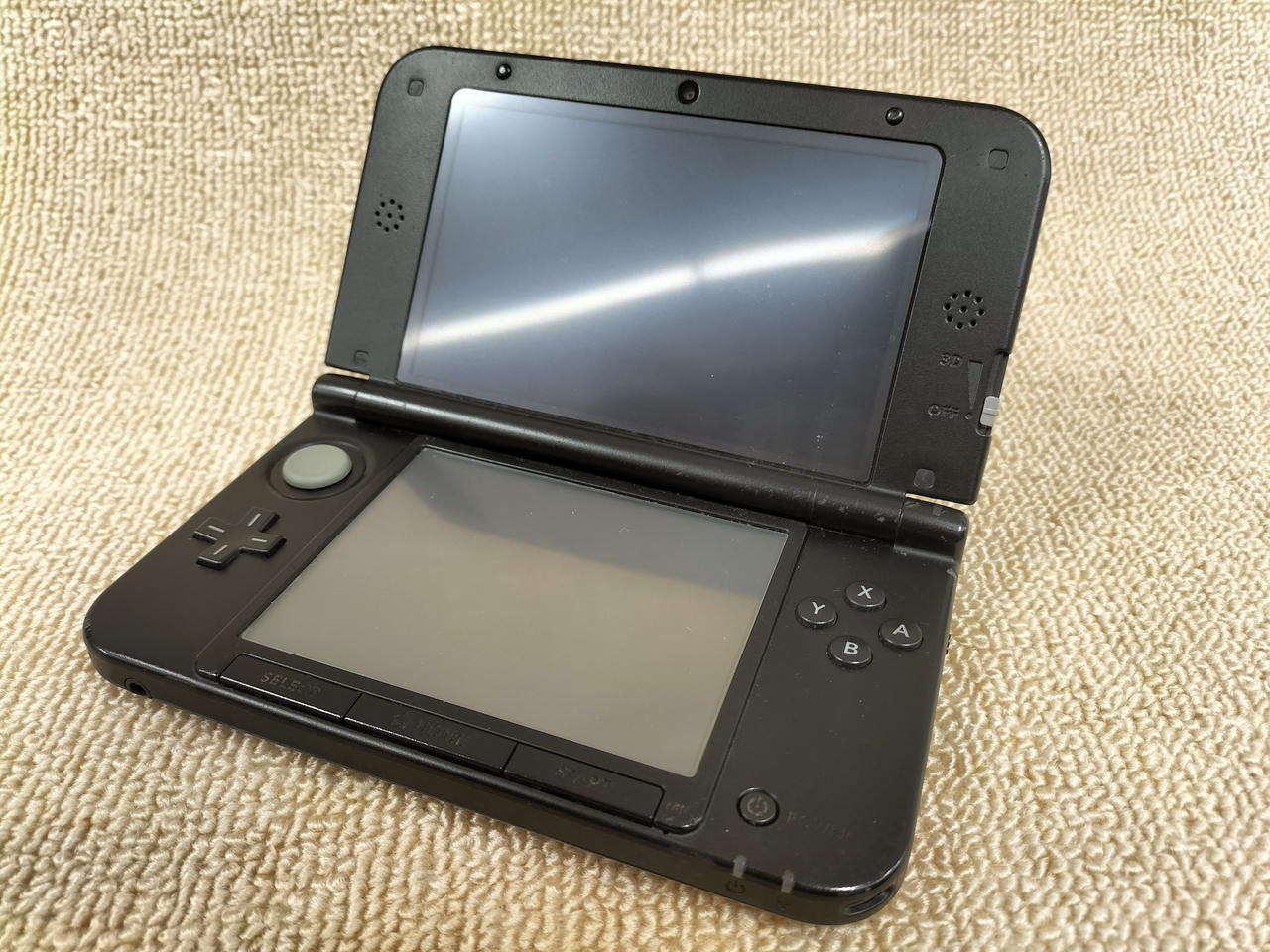 チェック時ゲームできました。充電できますが接触不良あり。外カメラ何も映りません。内カメラから外カメラに切り替えた時にフリーズします。下画面左下辺りに光漏れあり。 |