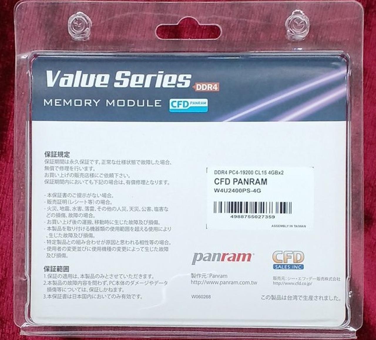 DDR4 PC4-19200 CL15 4GB×2枚 |