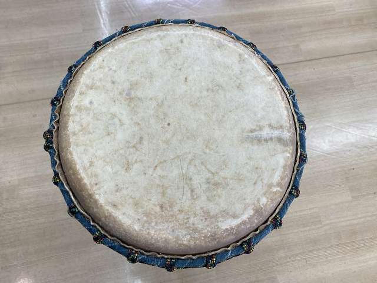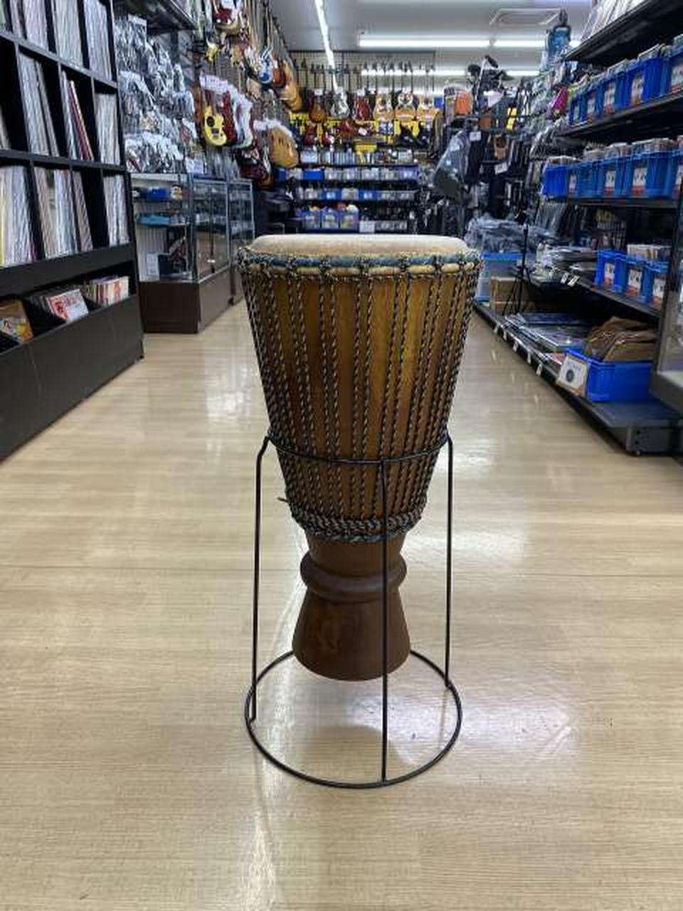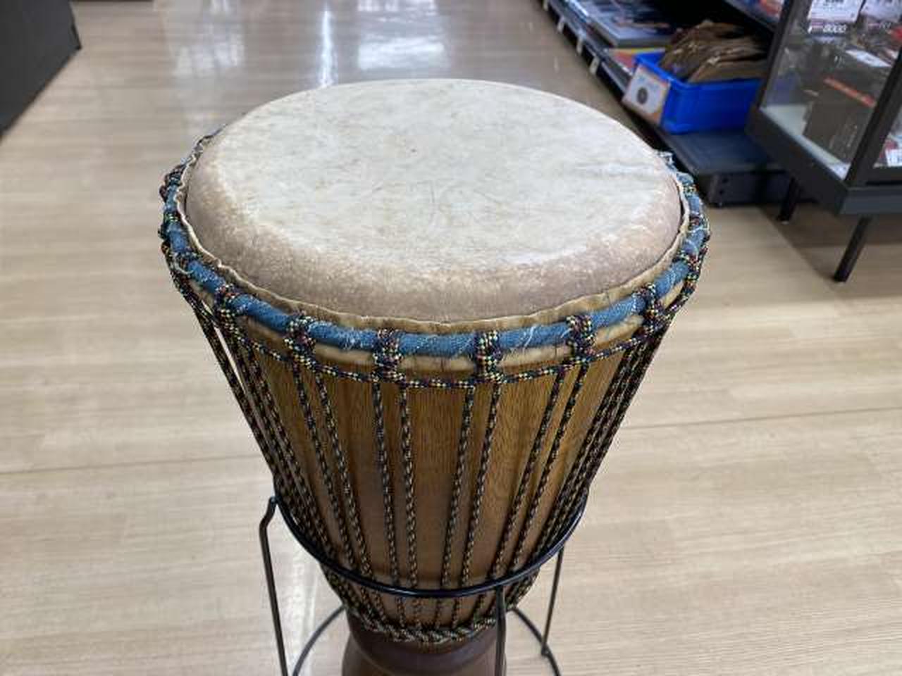 スタンド付属のジャンベです。 直径34cm 高さ65cm 底面19.5cm スタンド込み高さ 76cm |