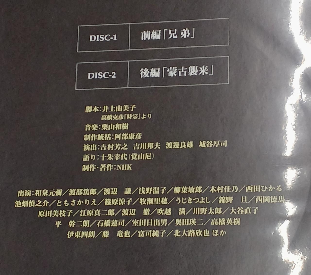 NHK大河ドラマ 北条時宗 総集編 ※ディスク1に多少のキズ、ディスク2にうすいこすれキズ有ります。 |