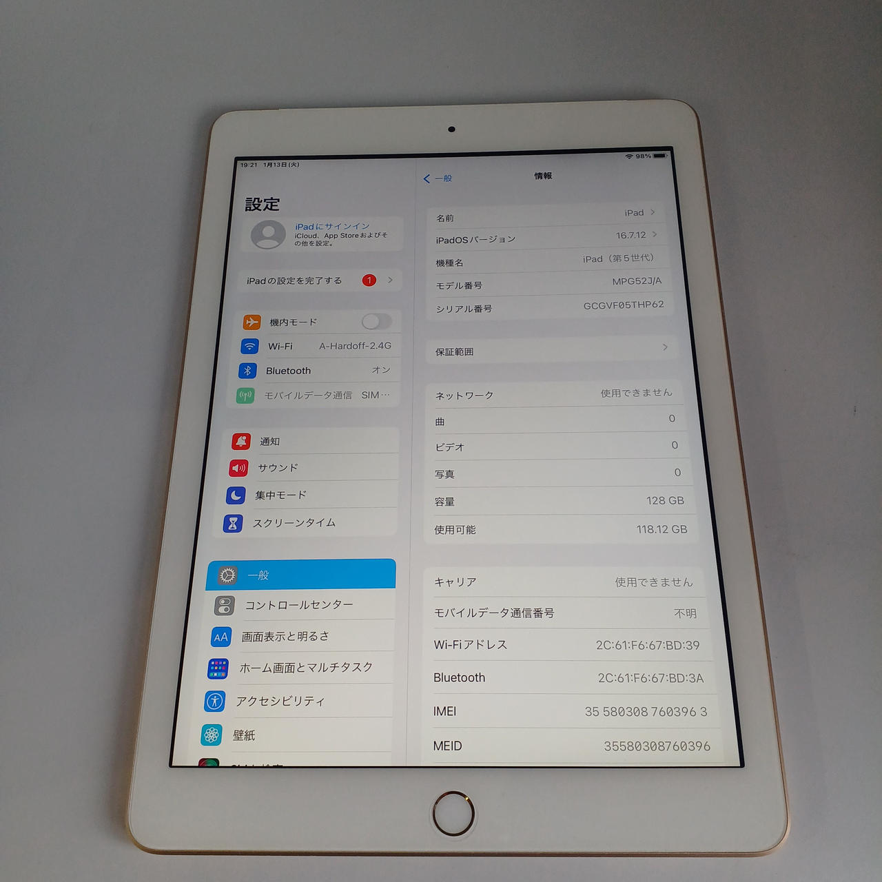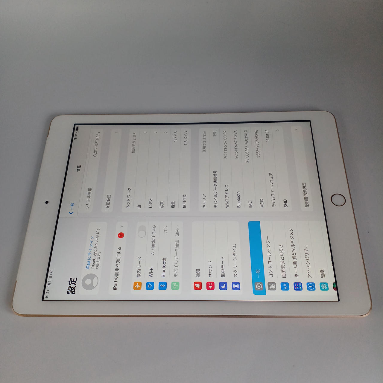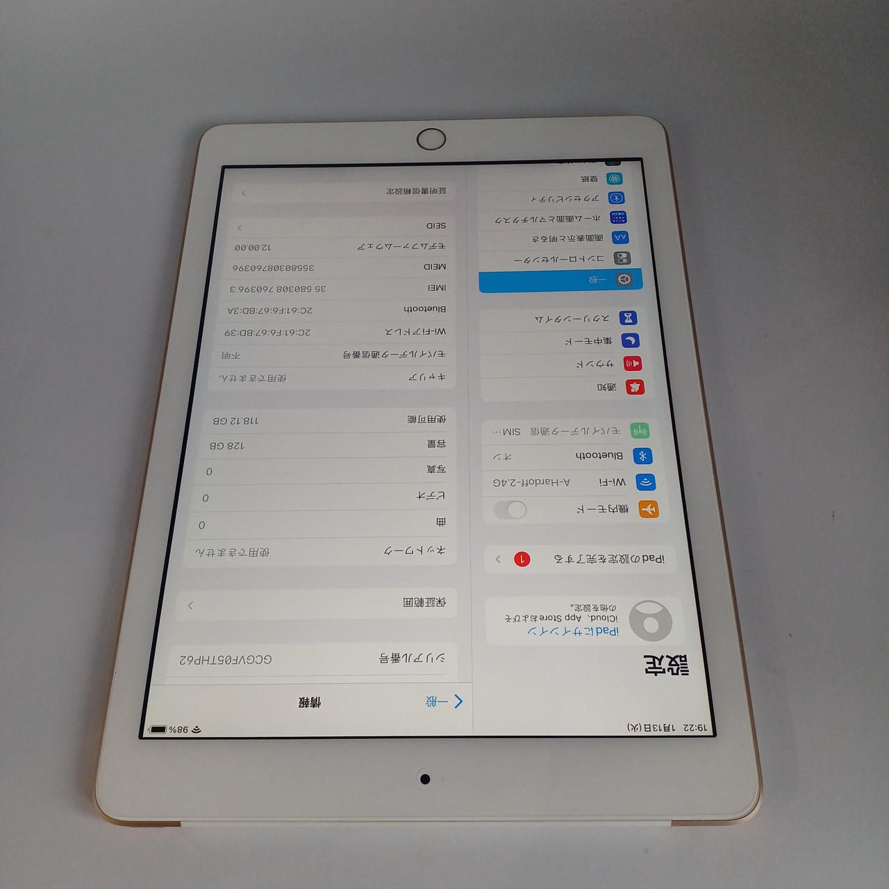 ストレージ:128GB カメラ:800万画素数 サイズ:9.7インチ |