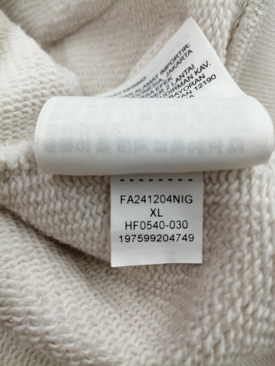 型番:サイズXL 右袖ヨゴレ