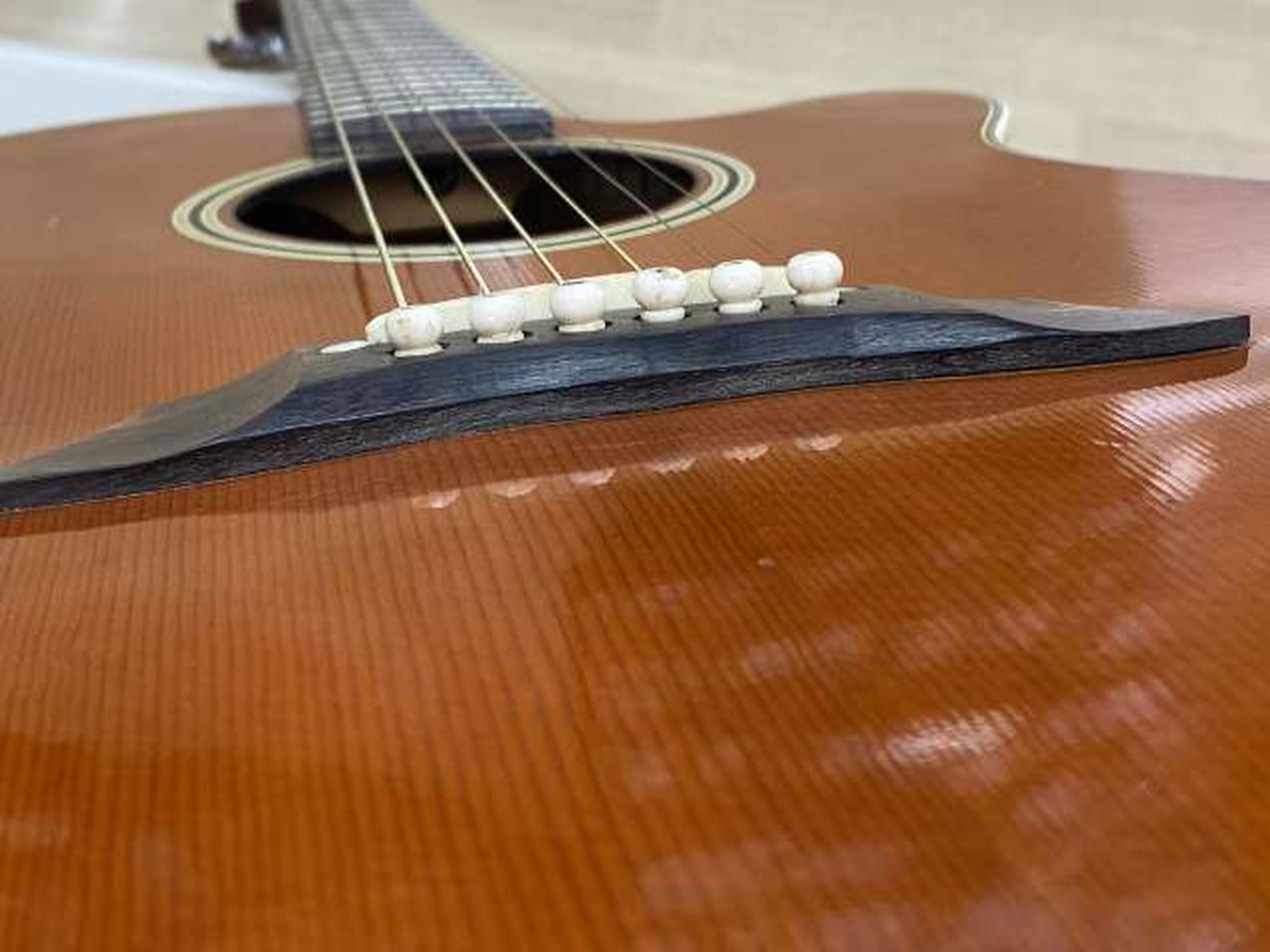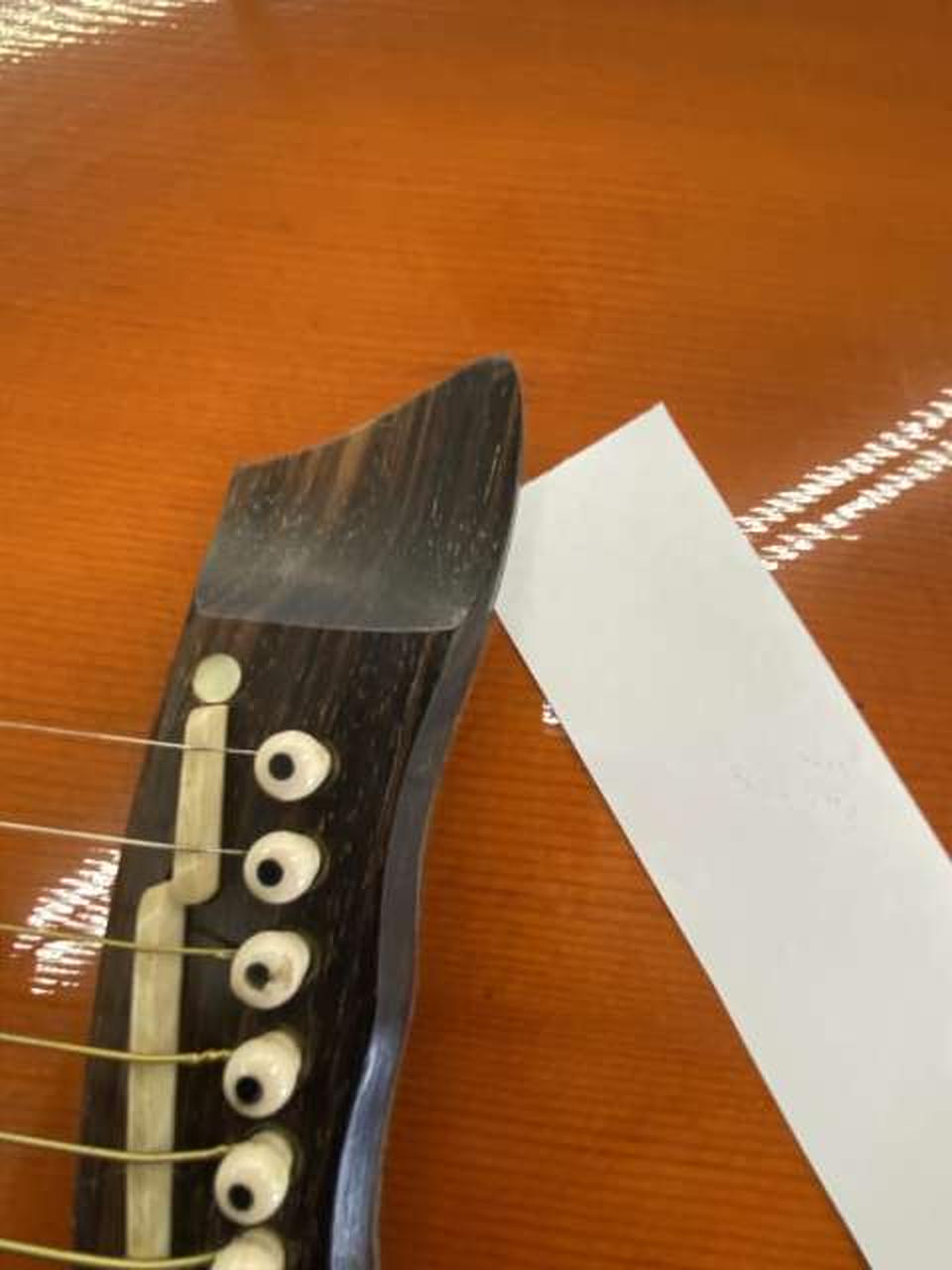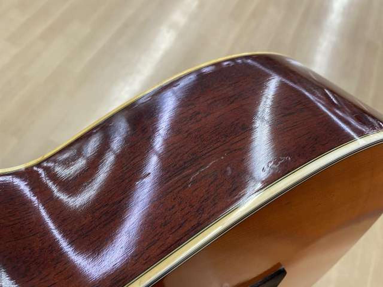 全体的にキズと1弦側ブリッジに少し剥がれとボディトップに膨らみがあります。現状でのお渡しです。 |