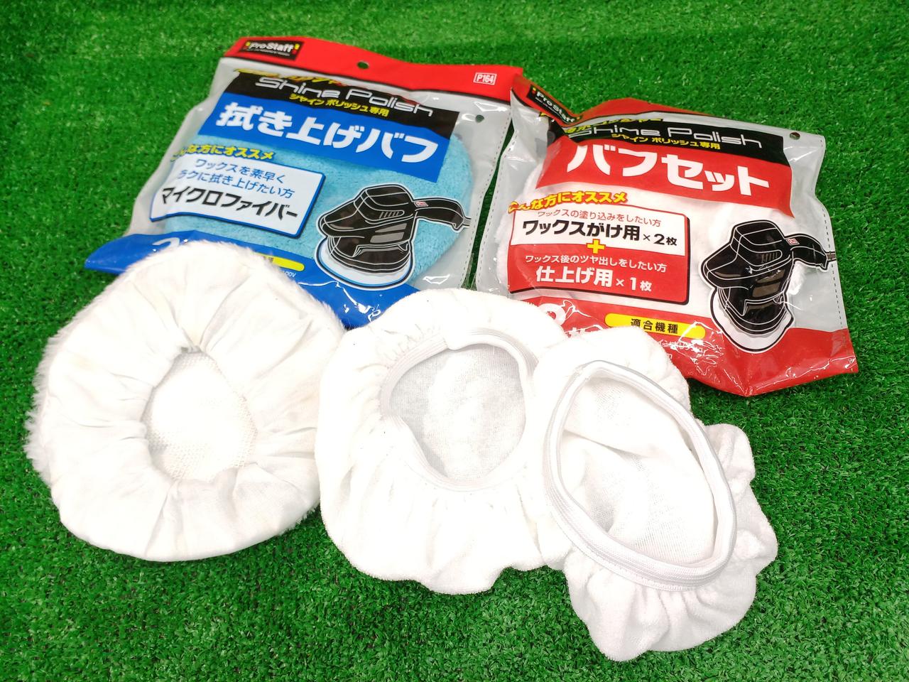 別売品の交換バフセット、拭き上げバフもセットになります。 |