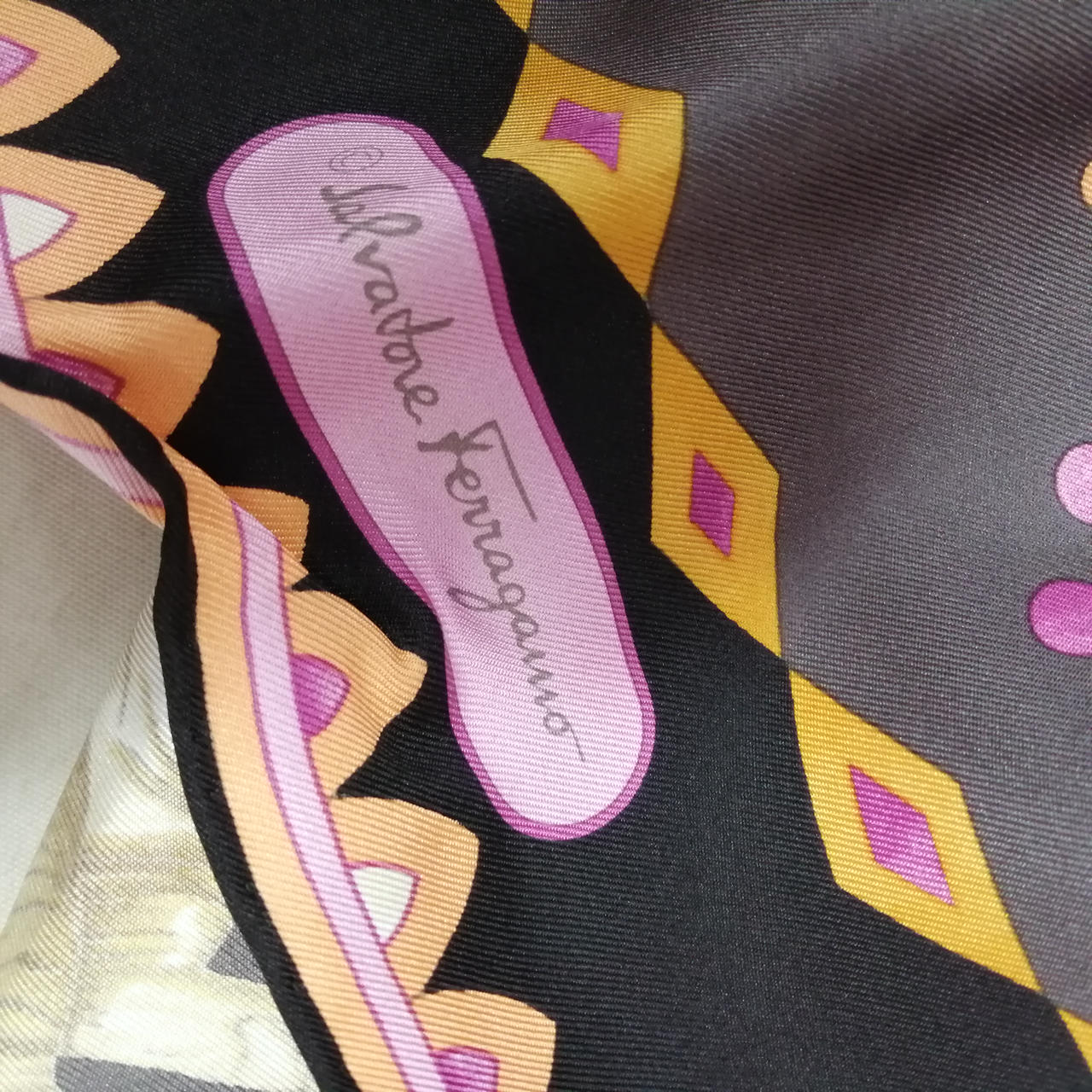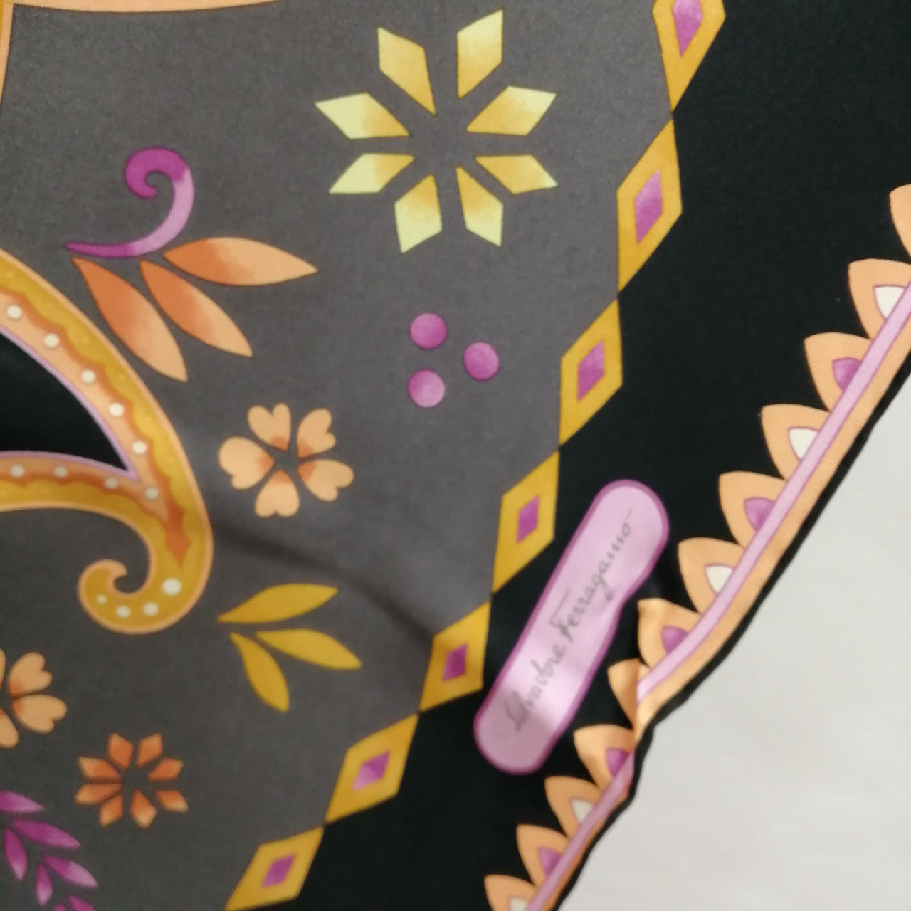 フェラガモの綺麗なカラーのスカーフです。シワあり。 |